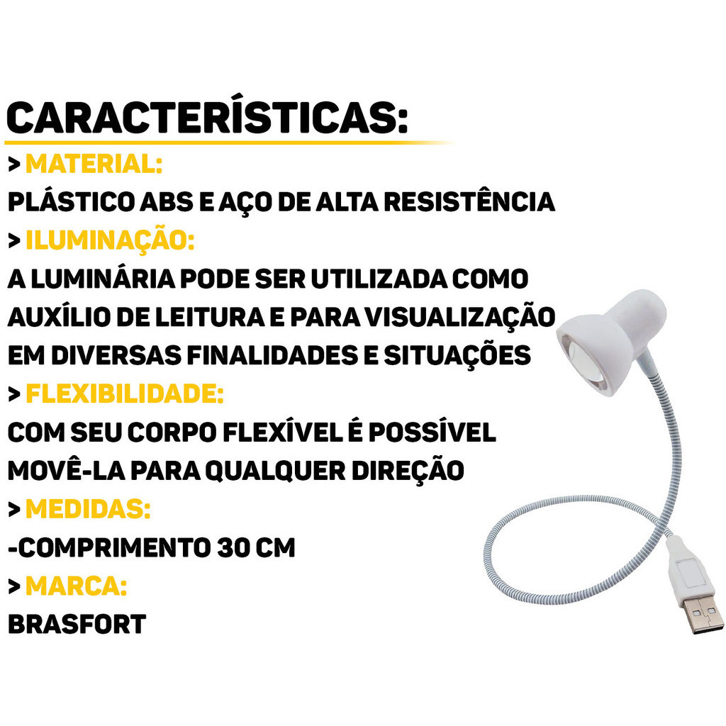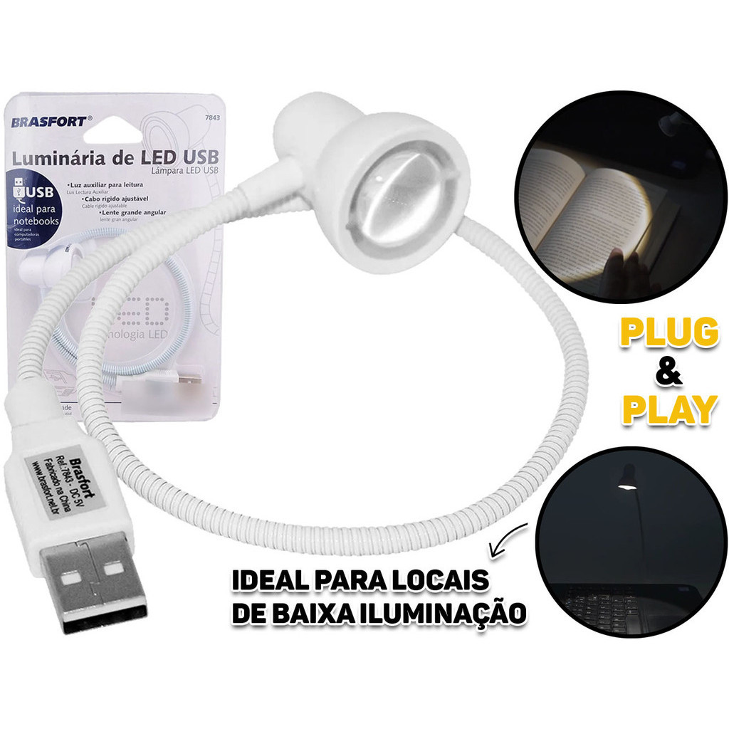 Luminária Led De Mesa Cabo Usb Rígido Ajustável Para Computador Notebook Auxiliar De Leitura