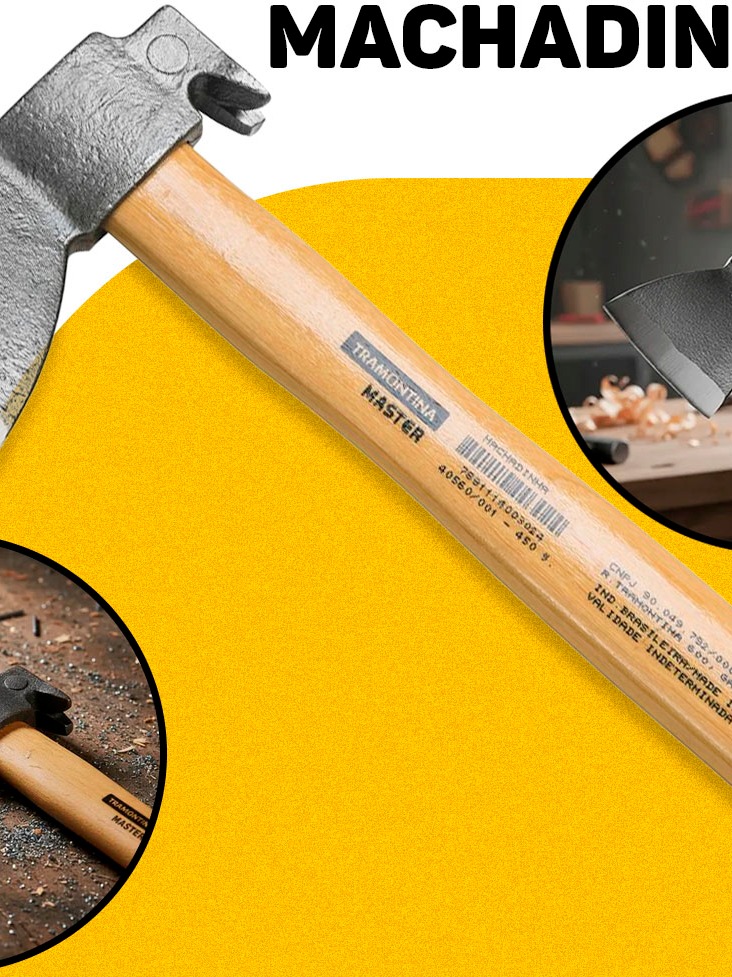 Machado Machadinha 450g Tramontina C/ Unha Cabo De Madeira Lenhador P/ Carpintaria Obras Jardinagem
