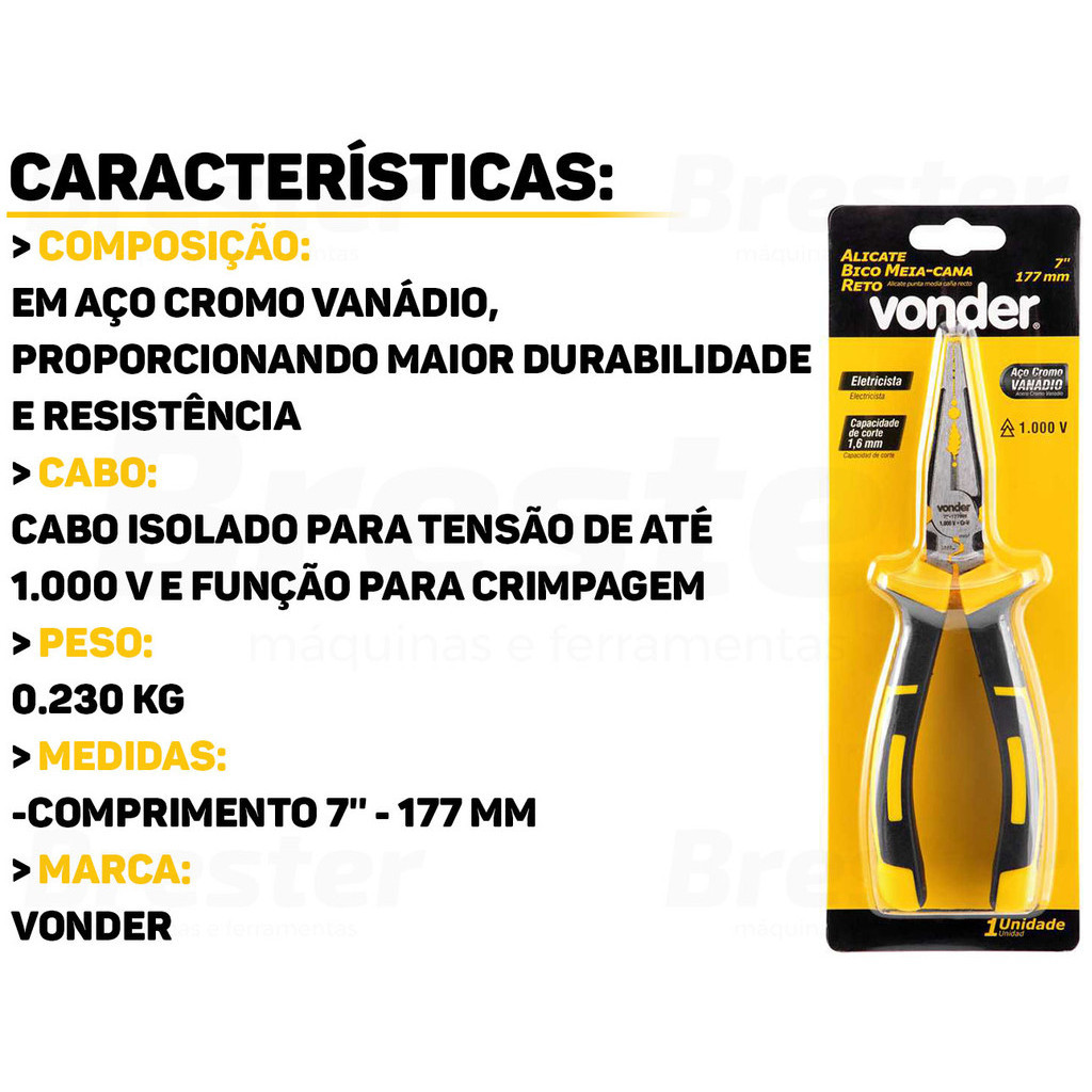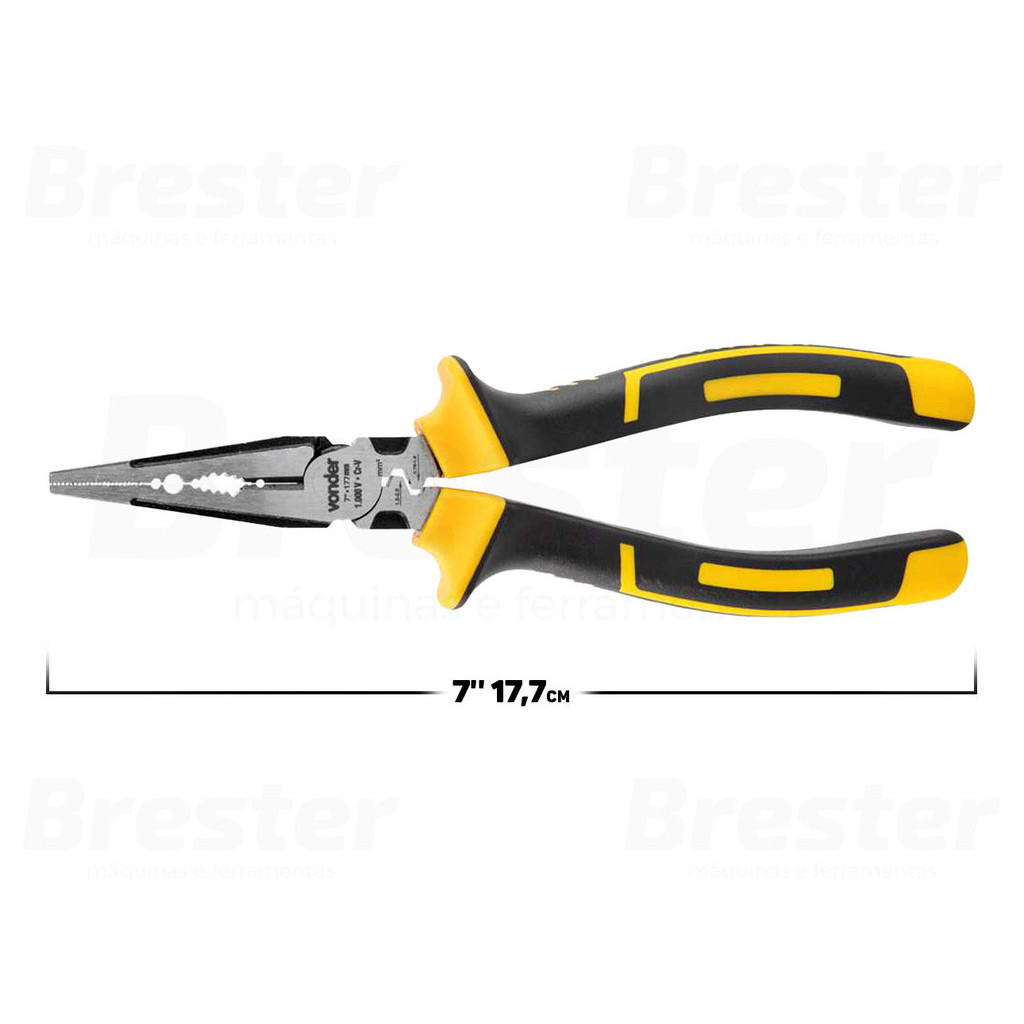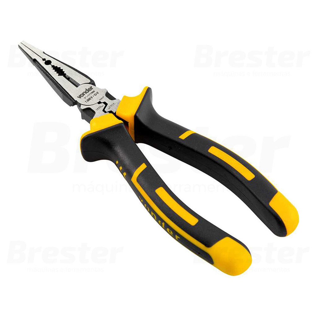 Alicate Bico Meia Cana Reto Cromo Vanádio Com Isolação Até 1000v 7 Polegadas Para Eletricista Vonder