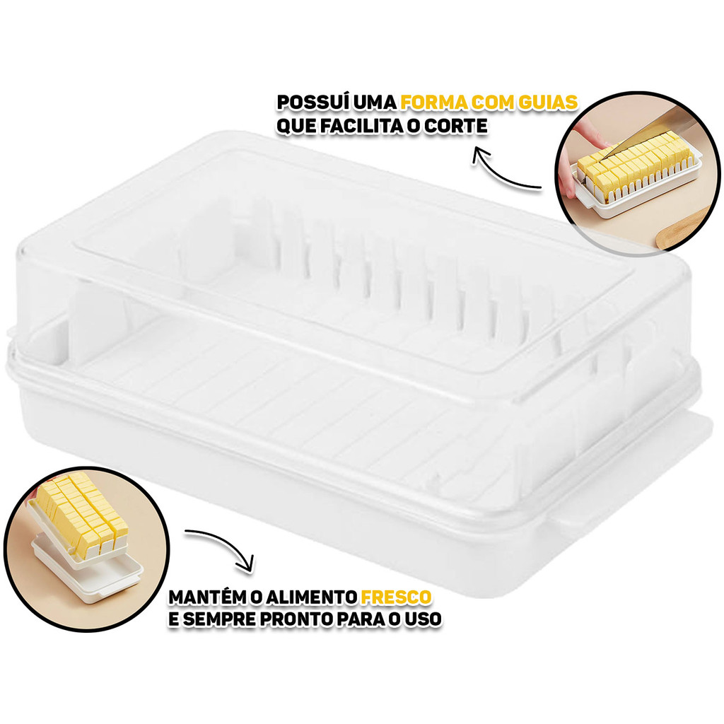 Porta Manteiga Margarina Frios Manteigueira Plástica Com Tampa Retangular Mesa Posta 14cm