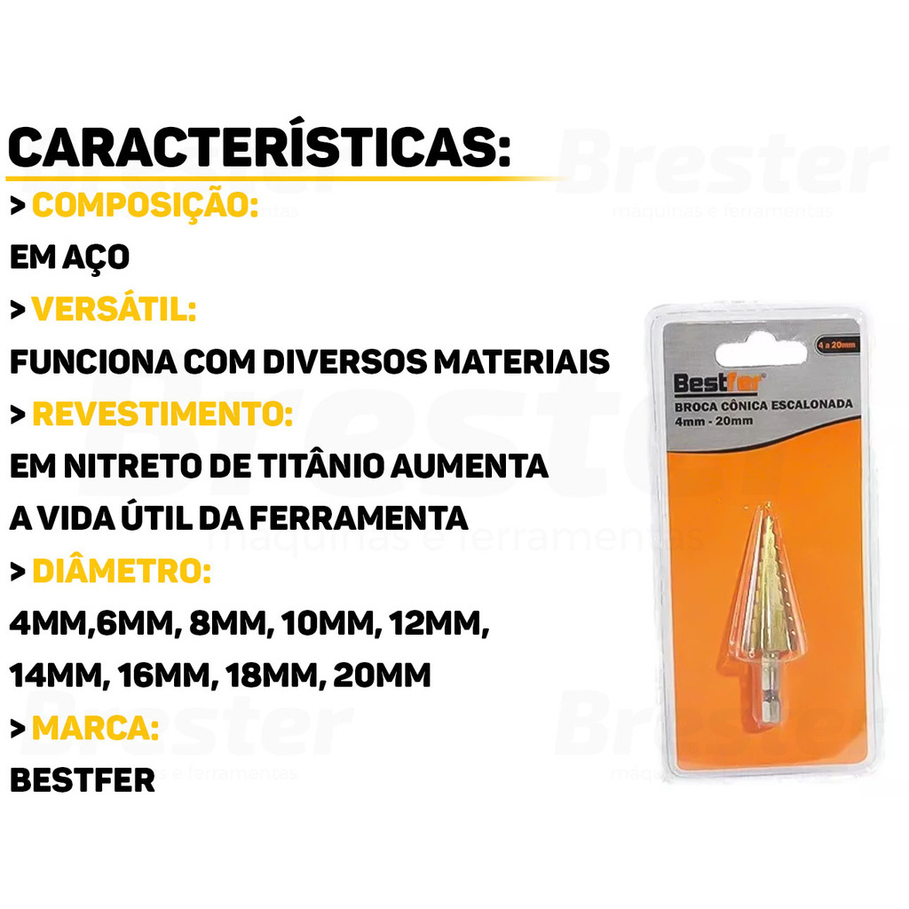 Broca Escalonada Cônica Aço Rápido 4 a 20mm Cortar Perfurar Chapa Alumínio
