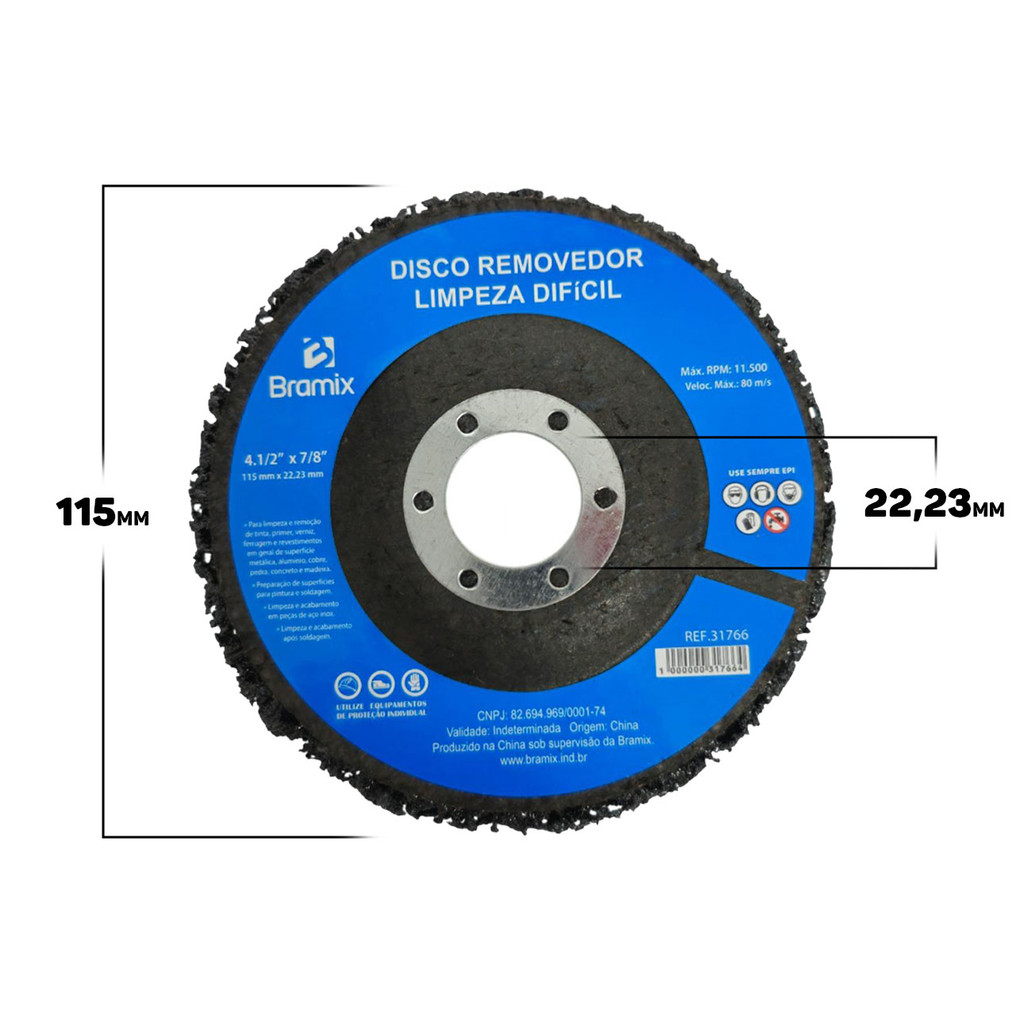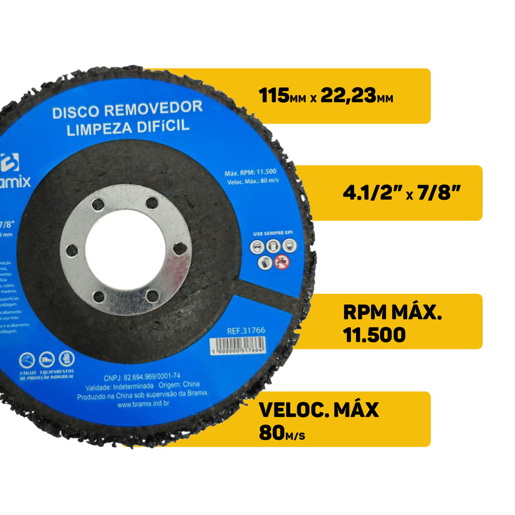 Disco Abrasivo Removedor De Limpeza Difícil Para Alumínio Cobre Madeira Tinta Verniz 115mm Bramix