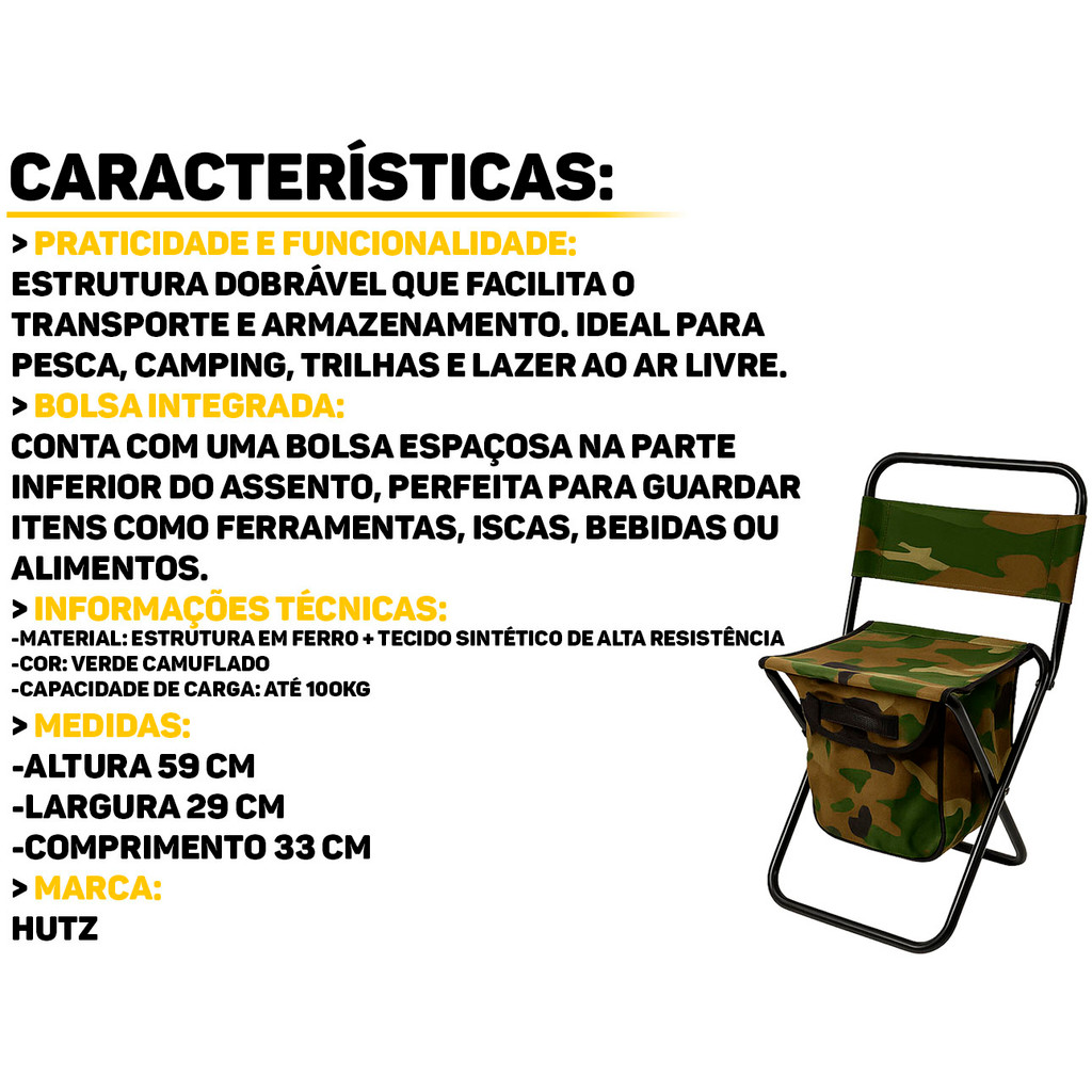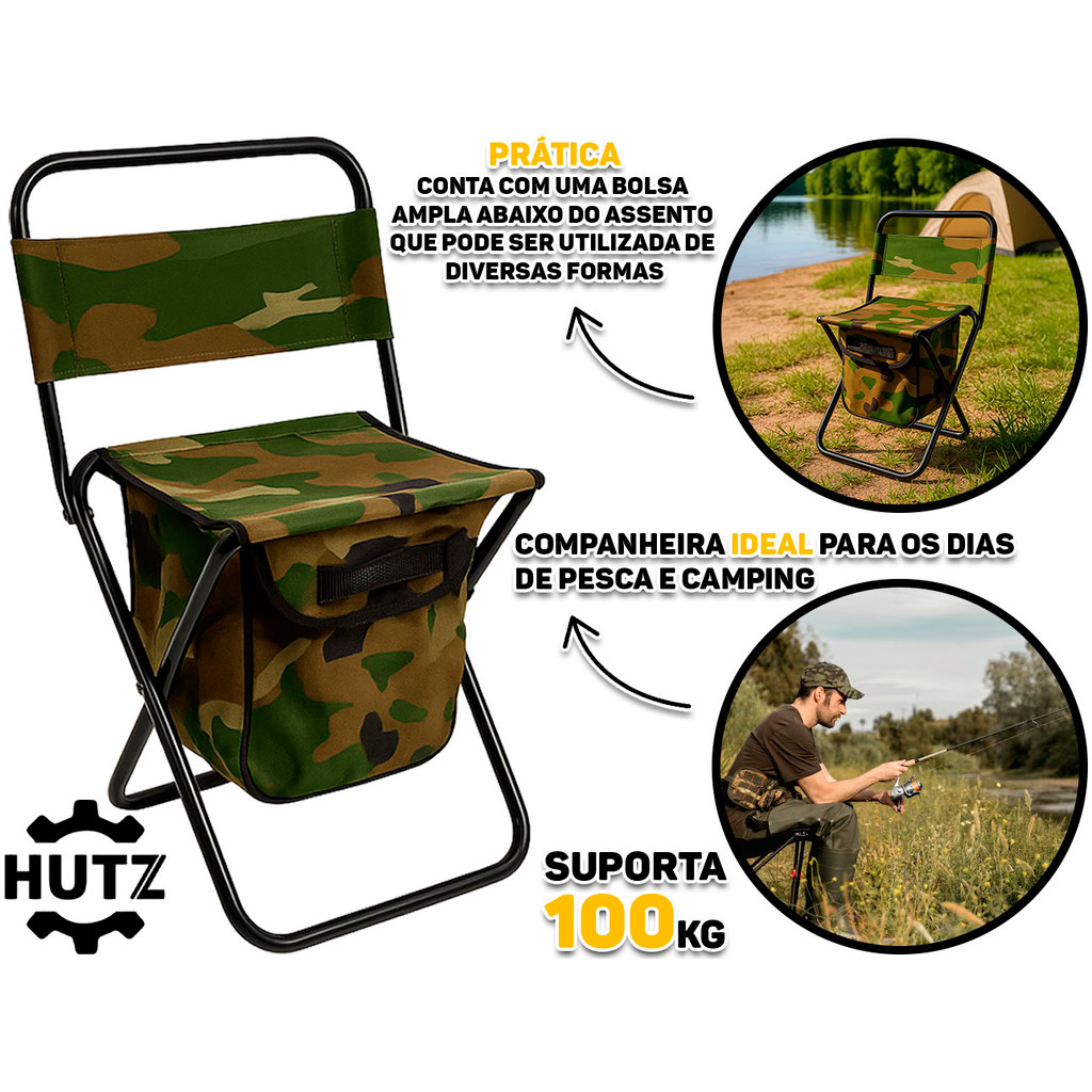 Cadeira Dobrável Portátil Para Acampamento Pesca Praia Ar Livre Capacidade Até 100kg Hutz
