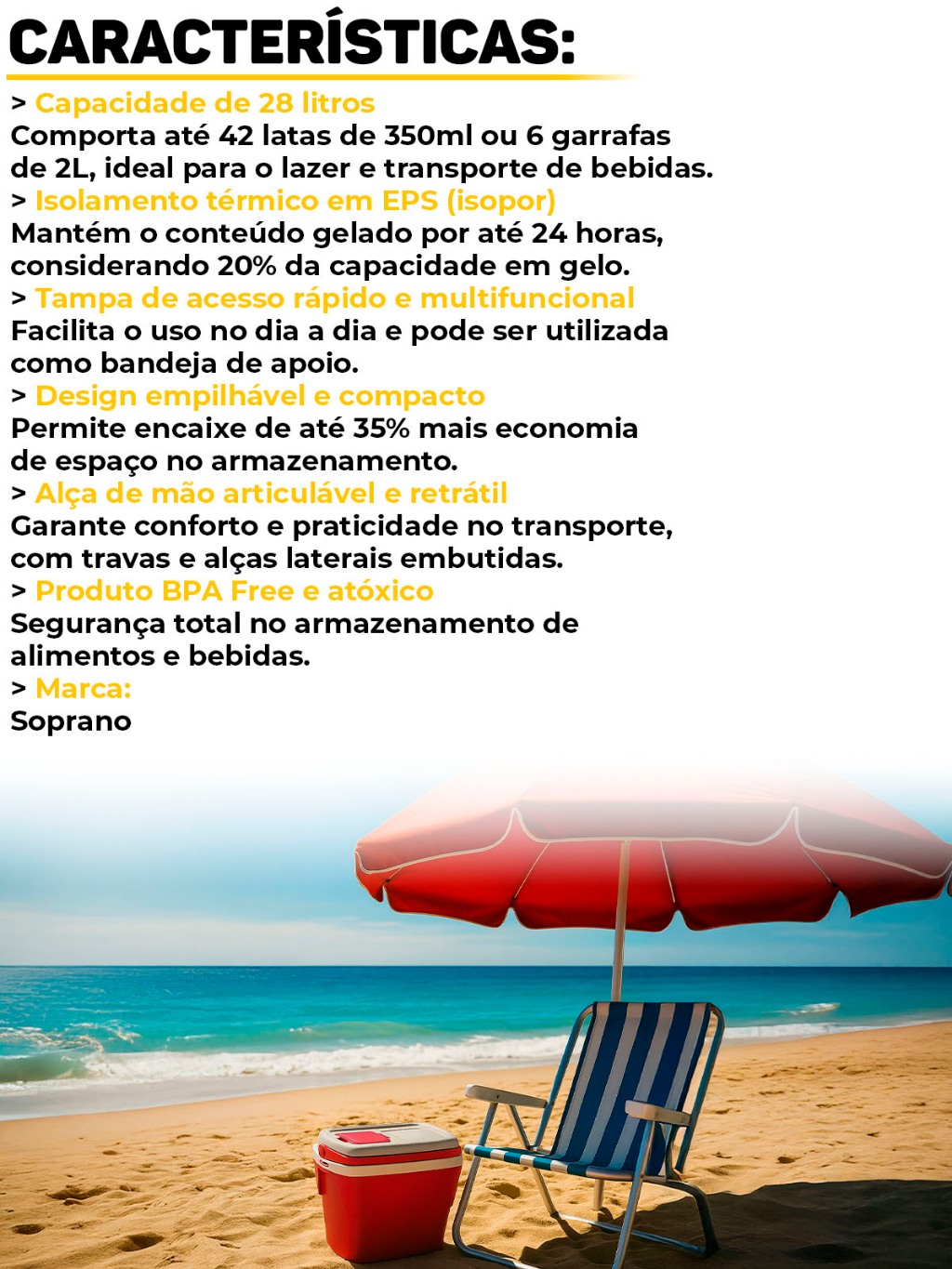 Cooler Caixa Térmica Tropical 28L Soprano Churrasco P/ Praia Pesca Viagens Bebidas