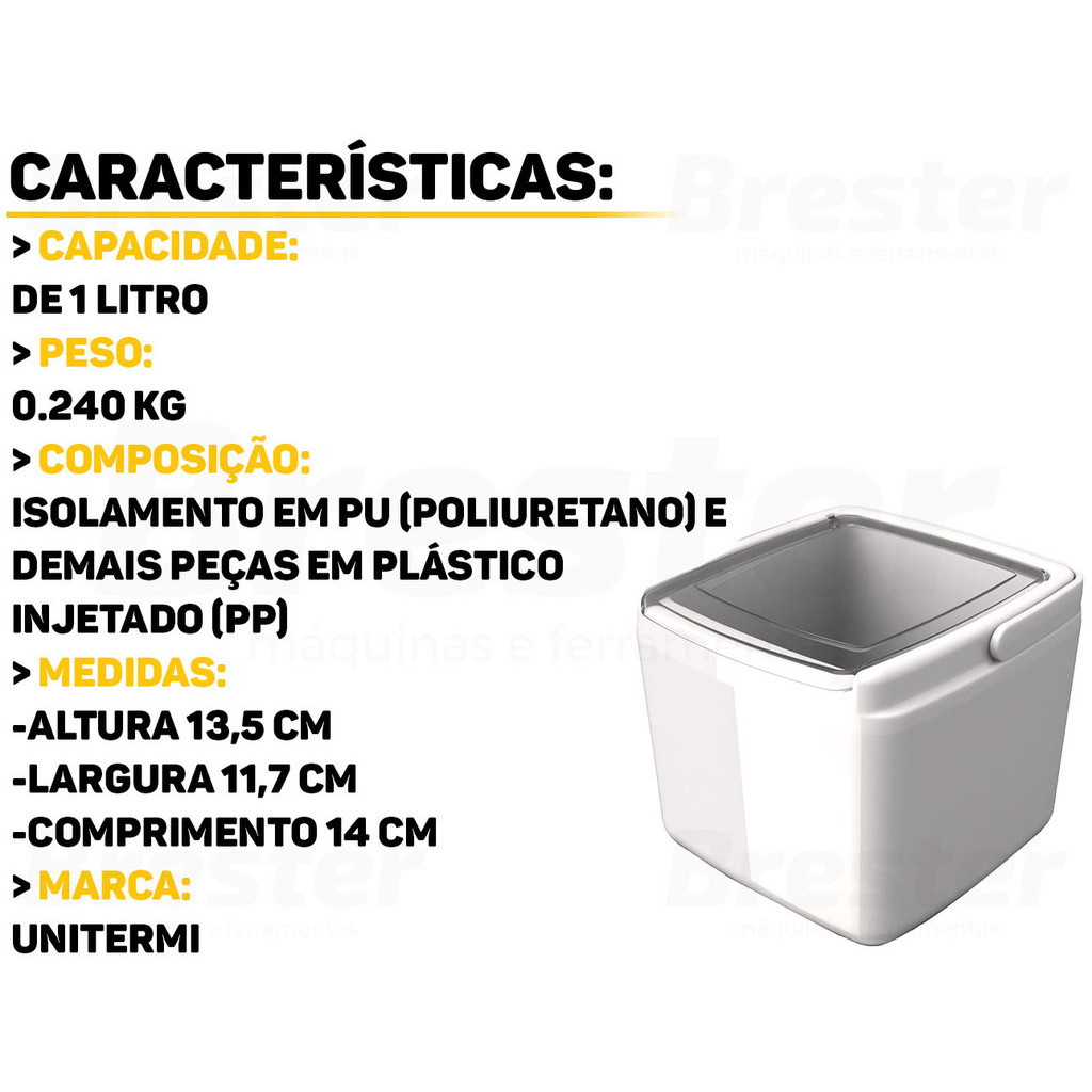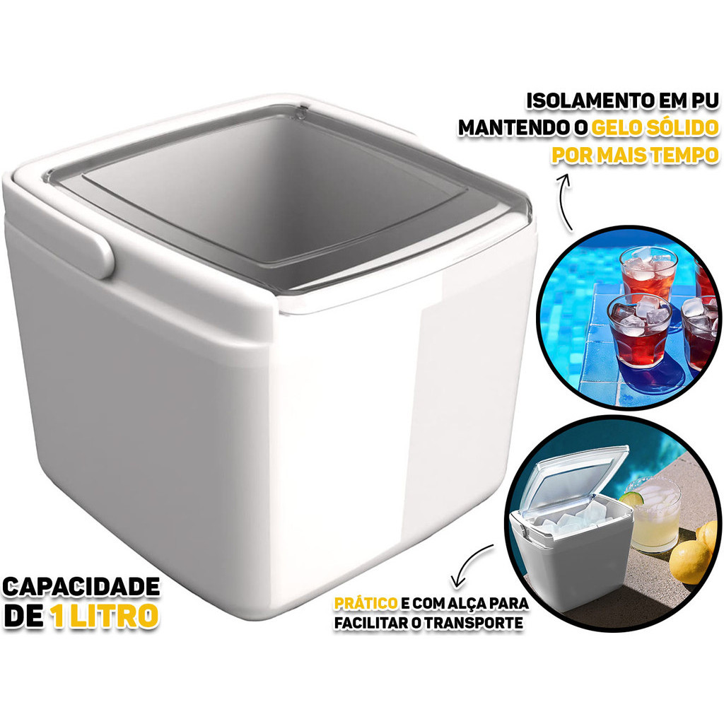 Porta Gelo Balde Térmico Alaska Com Tampa E Alça 1 Litro Pequeno Individual Para Praia Viagem
