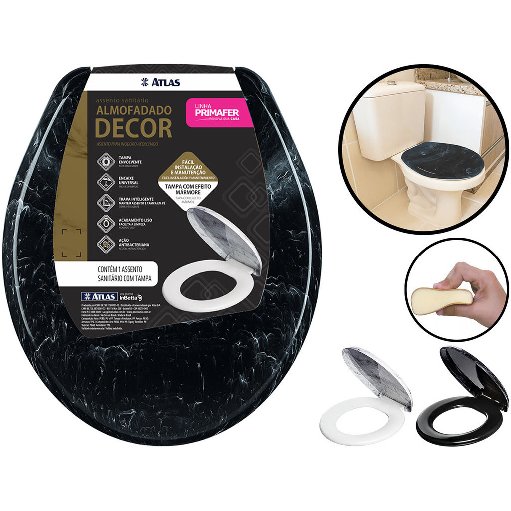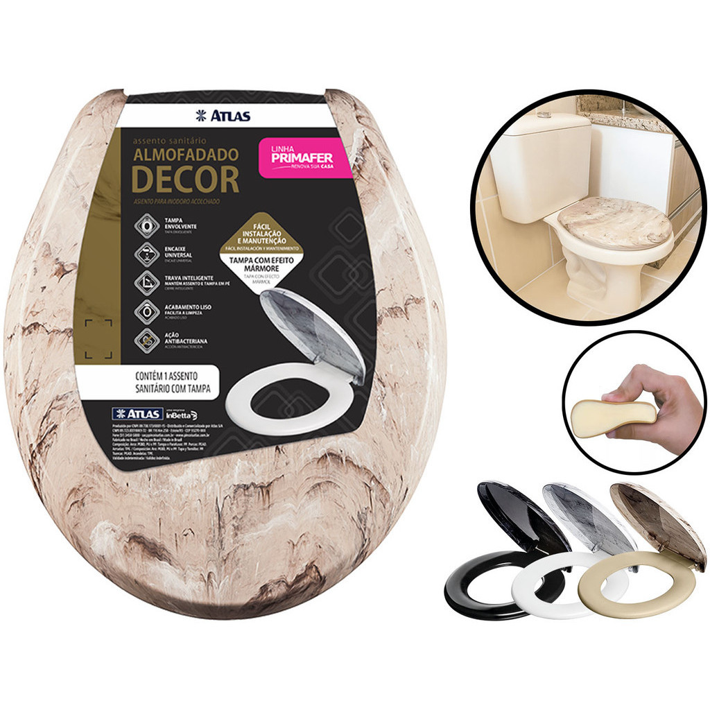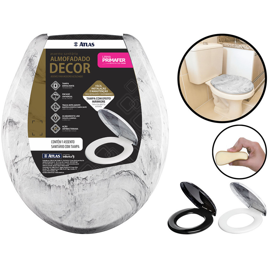 Assento Tampa Vaso Sanitário Almofadado Decor Mármore Marmorizado Oval Universal Atlas