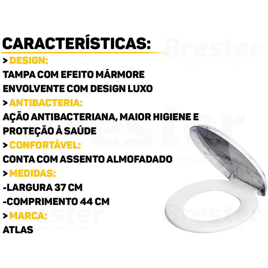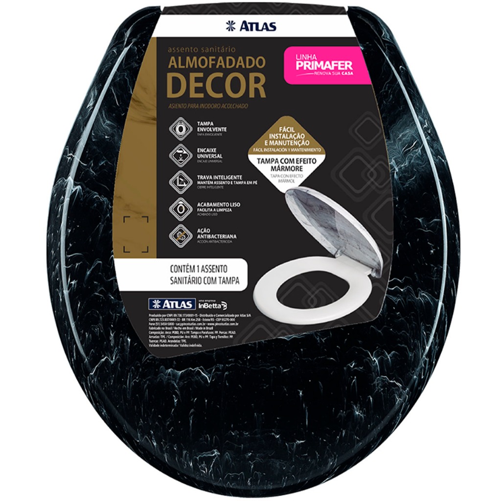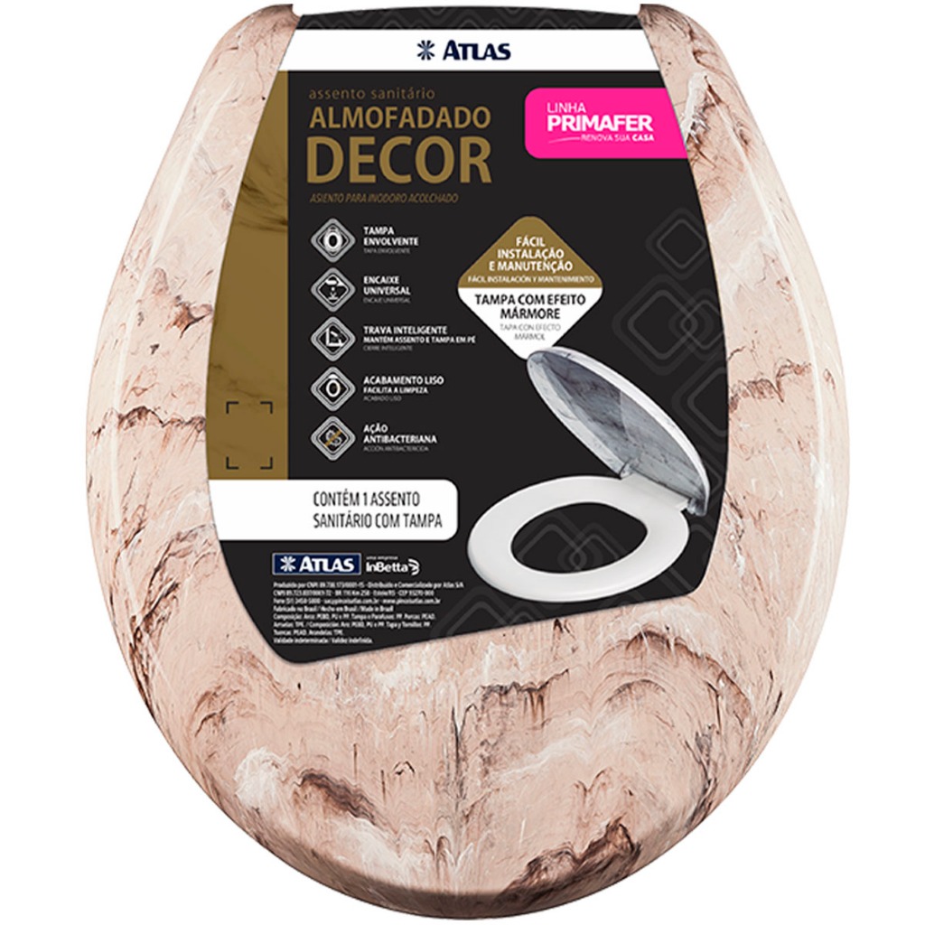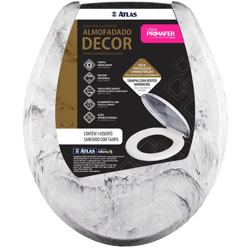 Assento Tampa Vaso Sanitário Almofadado Decor Mármore Marmorizado Oval Universal Atlas
