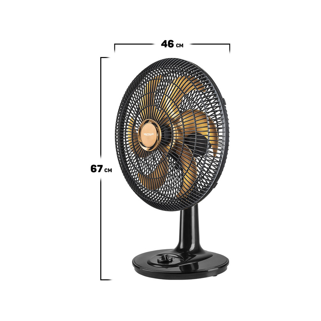Ventilador De Mesa Turbo 40cm Chão Parede Três Velocidades 6 Pás Preto E Bronze Ventimais