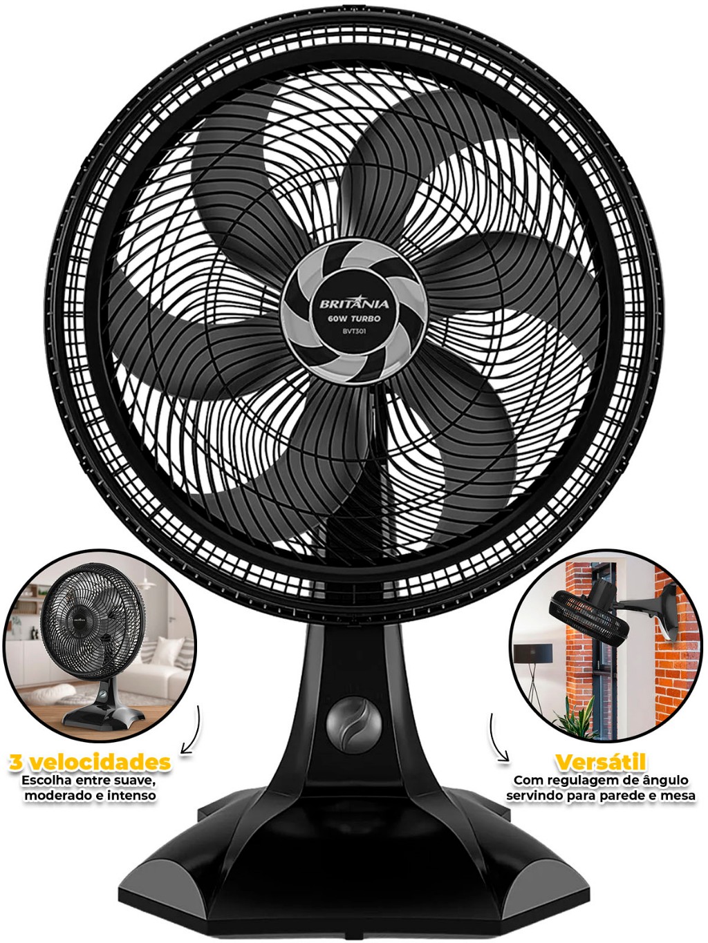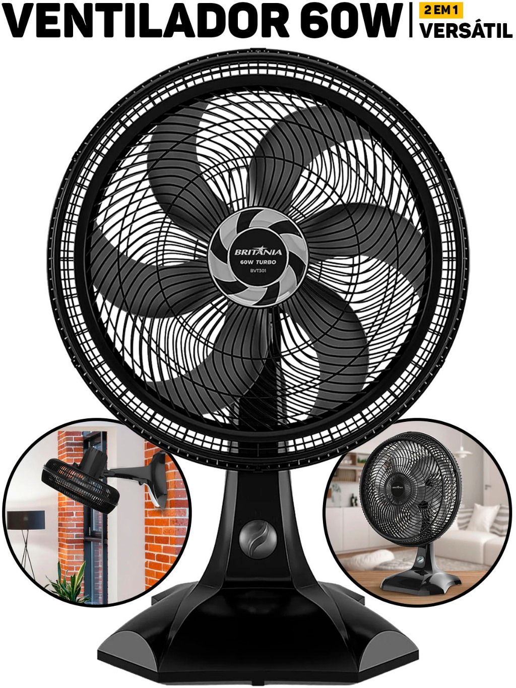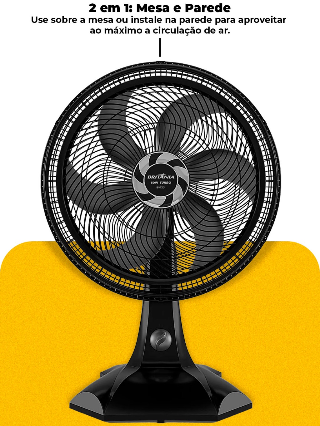 Ventilador De Mesa 2 Em 1 Britânia 60W BVT301 Silencioso P/ Casa Escritório Sala