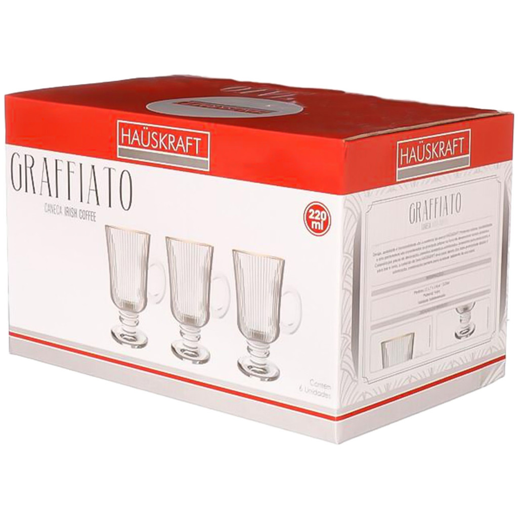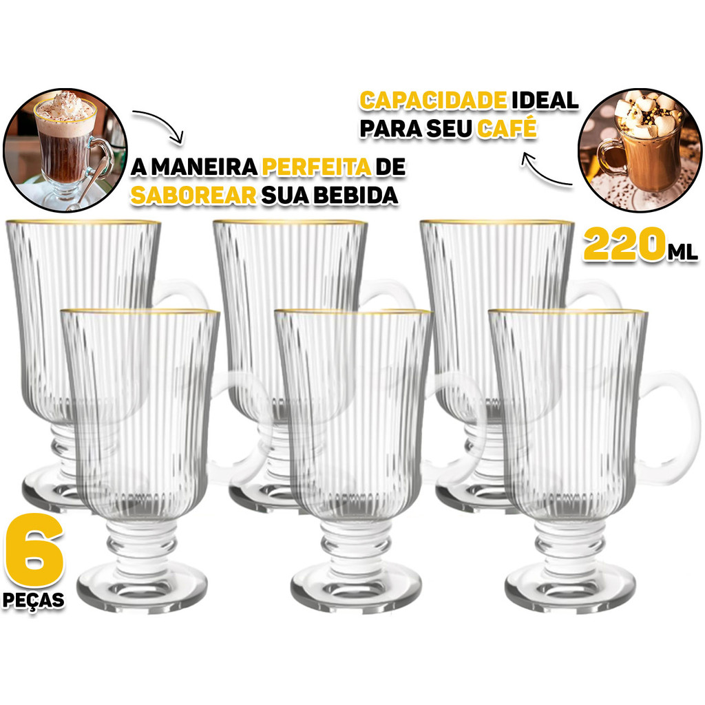 Conjunto Irish Canecas Em Vidro Bordas Douradas Para Cafés Chocolate Quente Chás 6 Peças 220ml