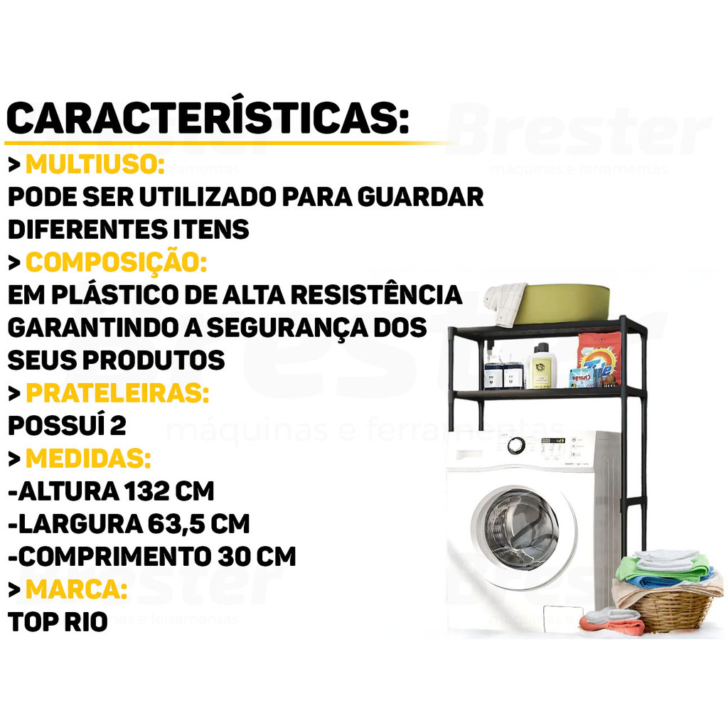 Estante Organizadora Para Lavanderia Máquina De Lavar Multiuso Com Duas Prateleiras Top Rio