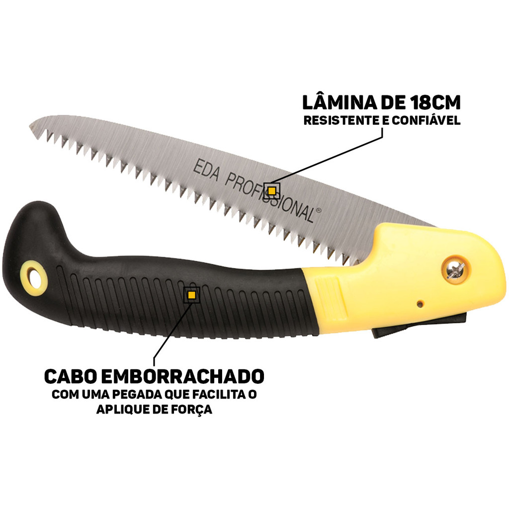 Serra Serrote Dobrável Para Poda Jardim Madeira Galhos Folhagem Lâmina 18cm Cabo Emborrachado