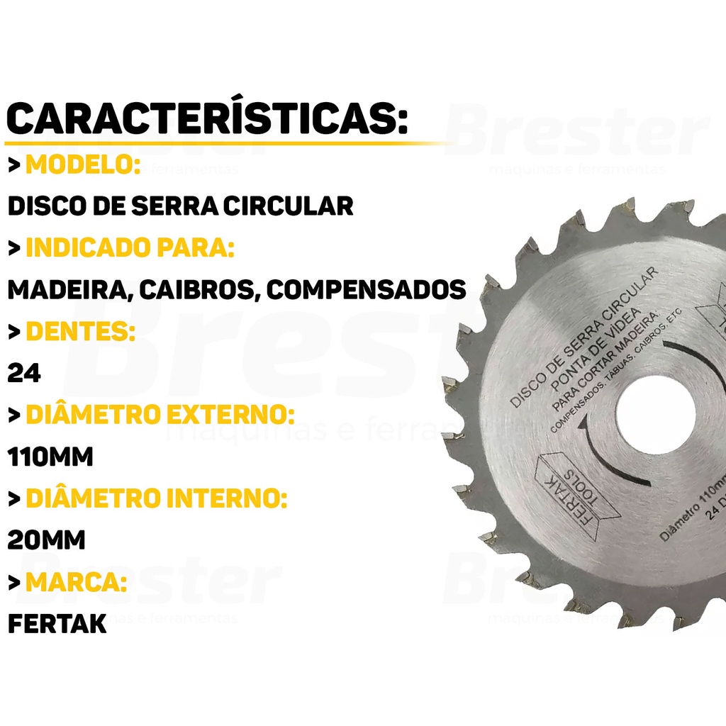 Disco Serra Circular Com 24 Dentes Para Madeira Marcenaria Precisão Fertak