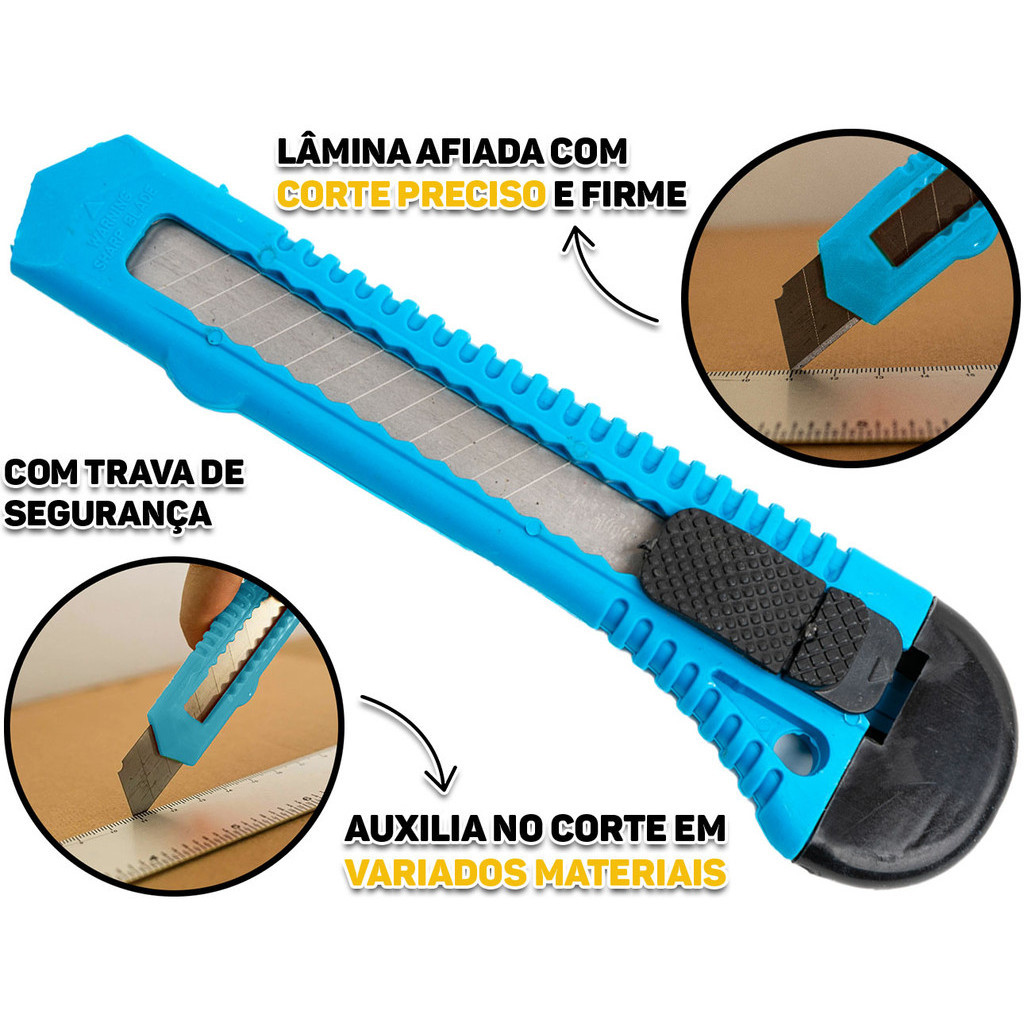 Estilete Profissional Doméstico Multiuso 1 Lâmina Aço 18mm Com Trava De Segurança