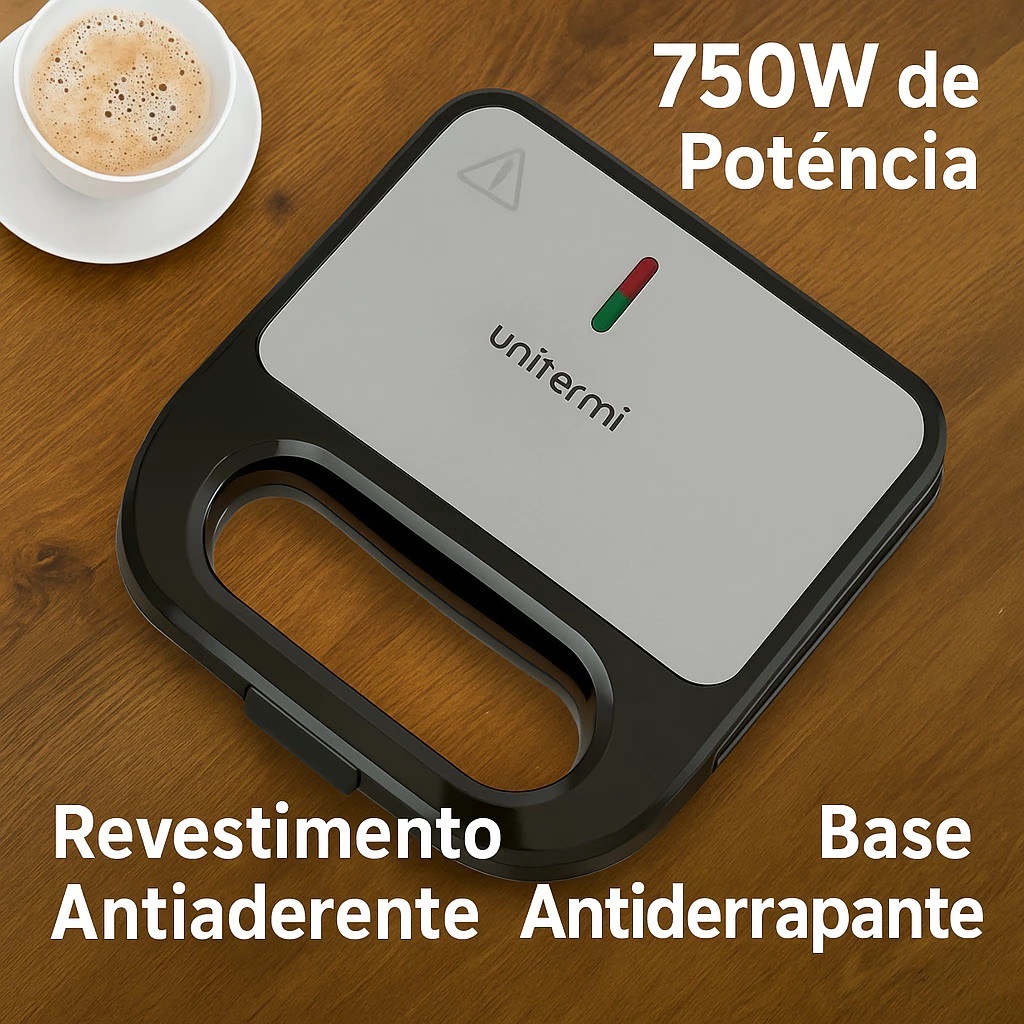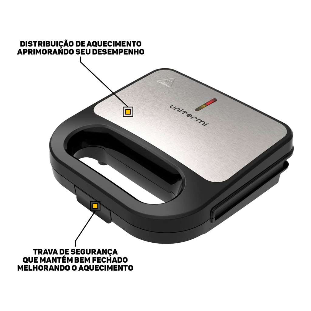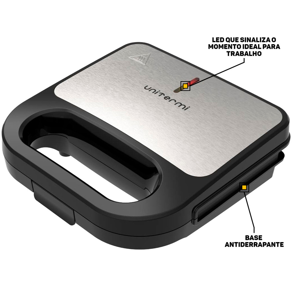Sanduicheira Grill Elétrica 750w Grelha Antiaderente Inox Com Alça Para Sanduíches Carnes Legumes