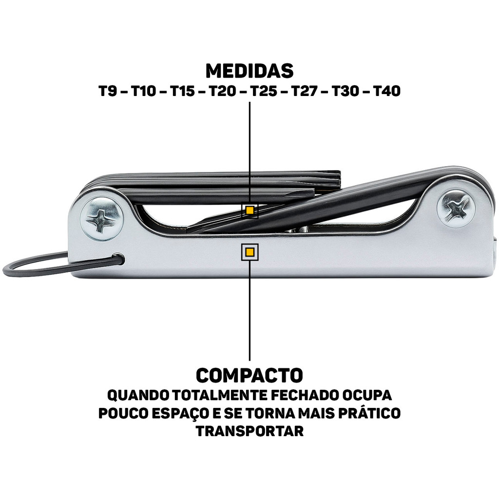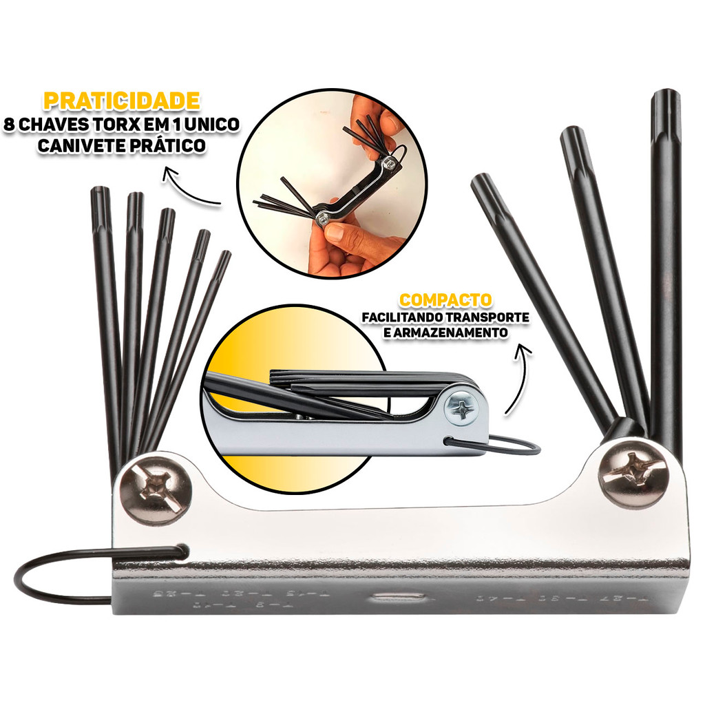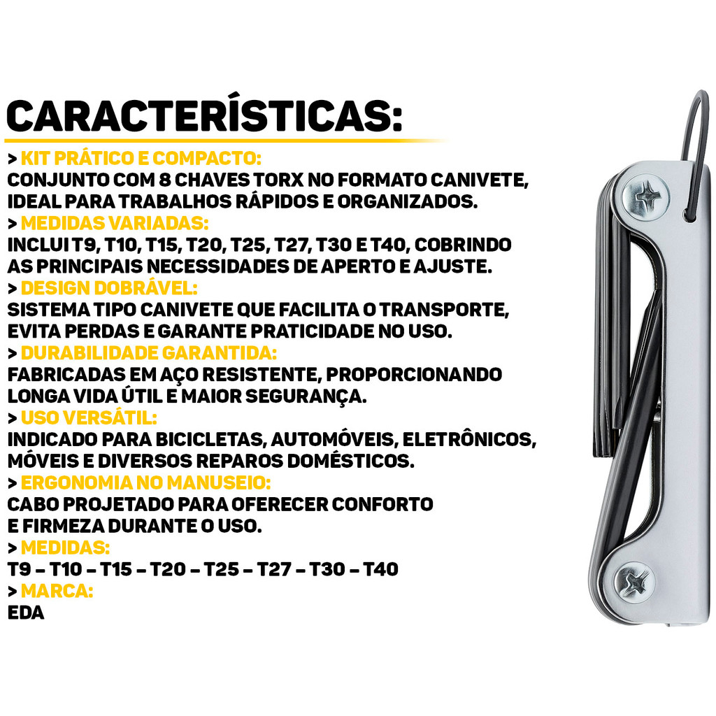 Chave Torx Tipo Canivete Jogo 8 Peças Eda T9 A T40 Ferramentas Compacto E Prático Aço Resistente Eda