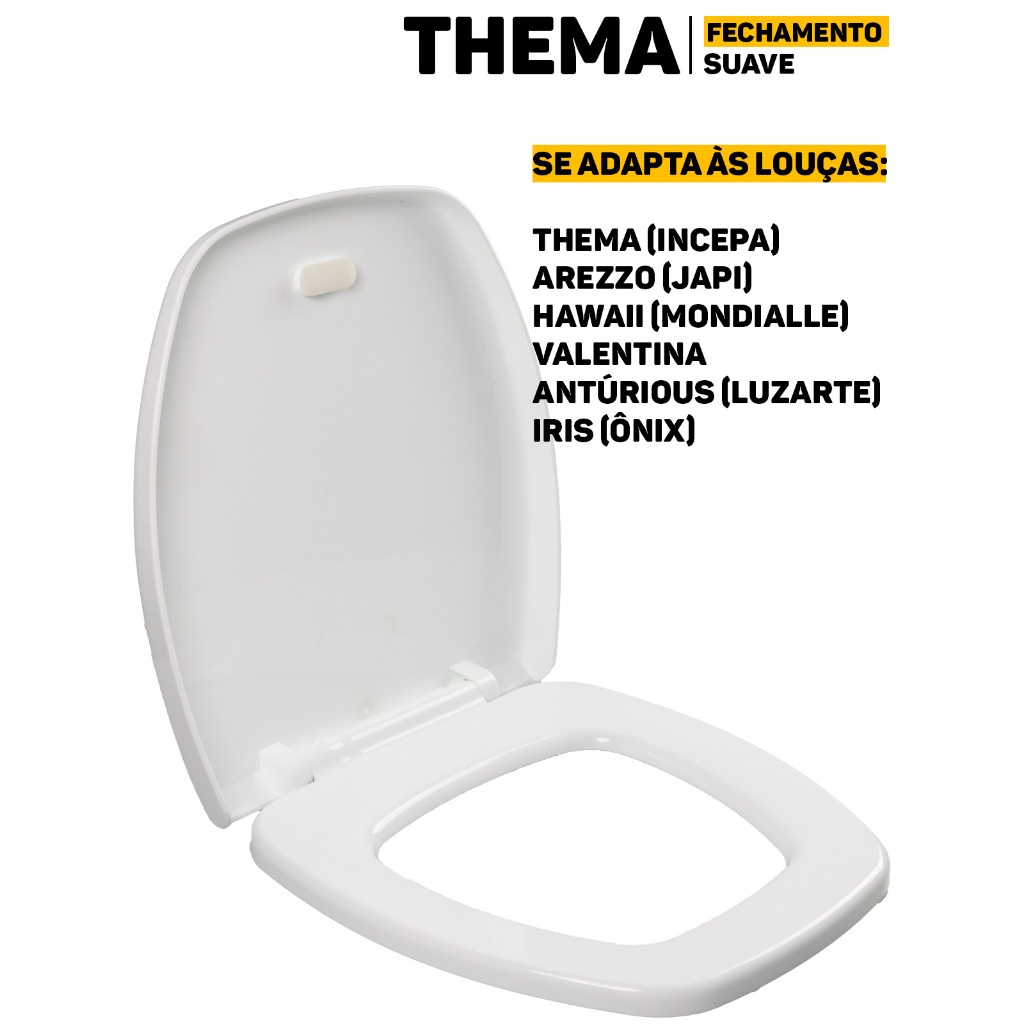 Assento Vaso Sanitário Retangular Thema Soft Close Atlas Fechamento Suave Incepa Primula Sabatini Anturius Versato