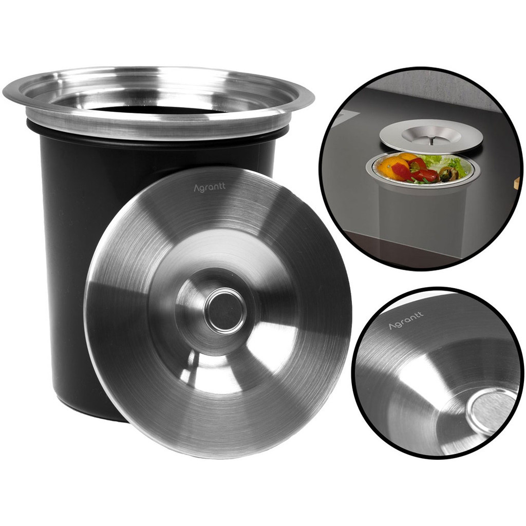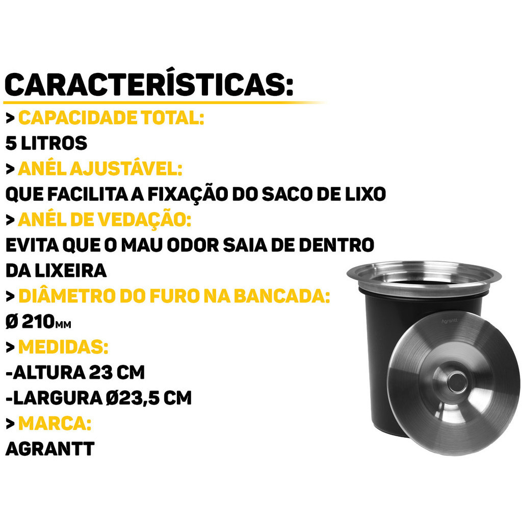 Lixeira De Embutir 5 Litros Para Pia Bancada Cozinha Granito Aço Inox Escovado 304 Agrantt