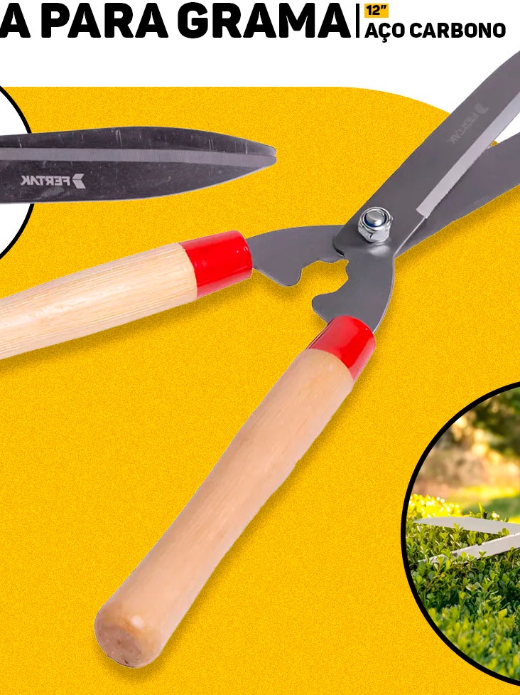 Tesoura De Jardinagem 12'' Fertak Poda Cerca Viva Arbustos Grama Cabo De Madeira Afiada Jardim