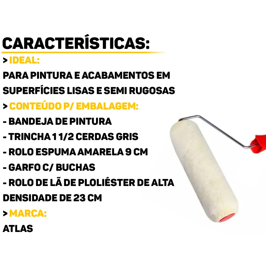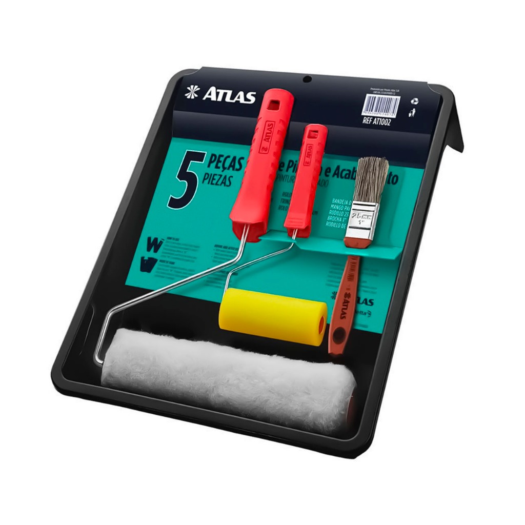 Kit Pintura E Decoração Completo Teto Parede Multiuso Rolo Bandeja Pincel Rolinho 5 Peças Atlas Original