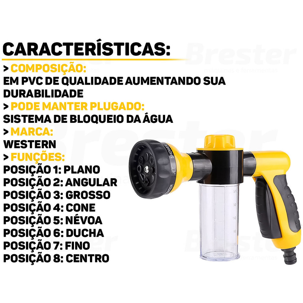 Esguicho Para Jardim Horta Com Copo Jato Múltiplo 8 Funções Gatilho Com Trava Engate Rápido 1/2"