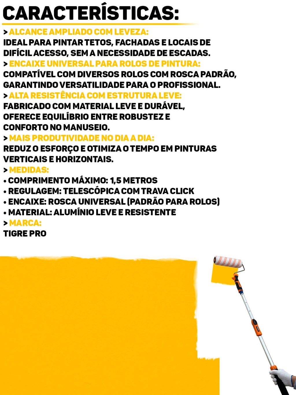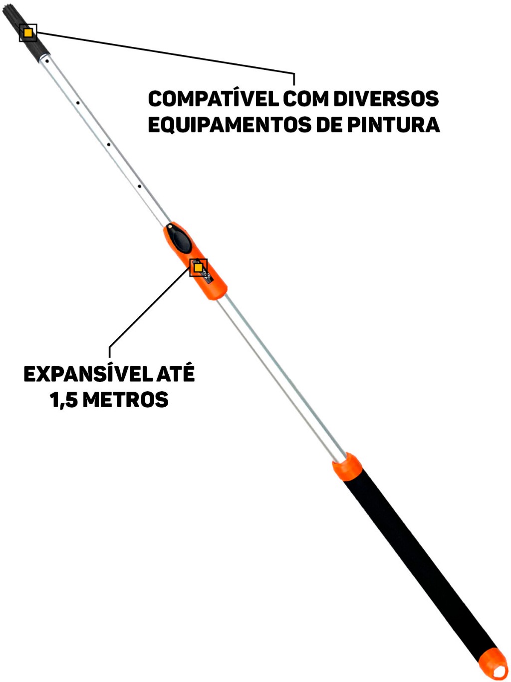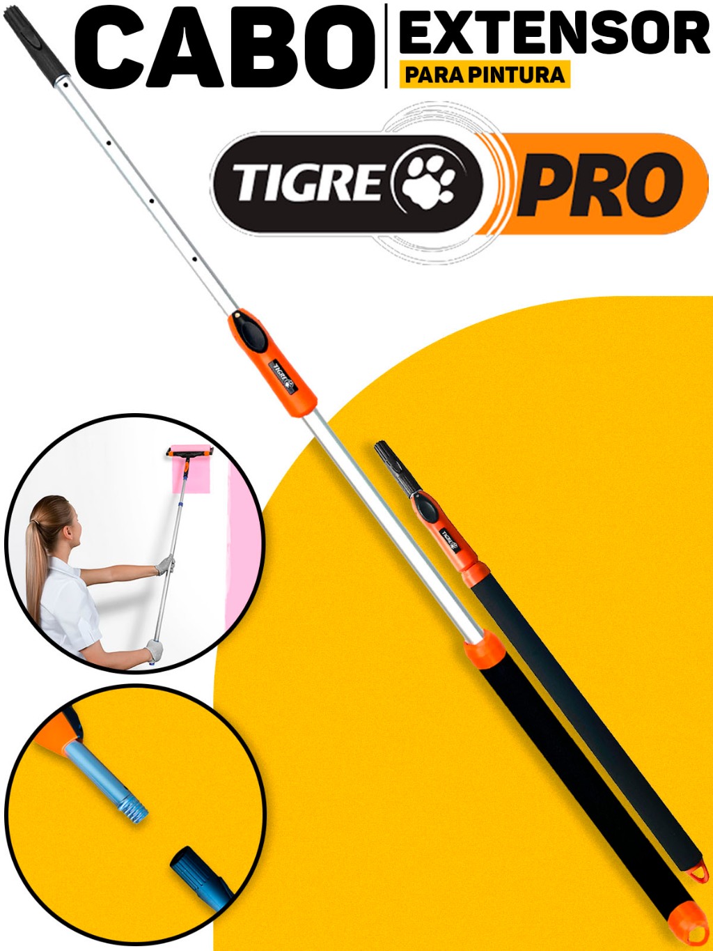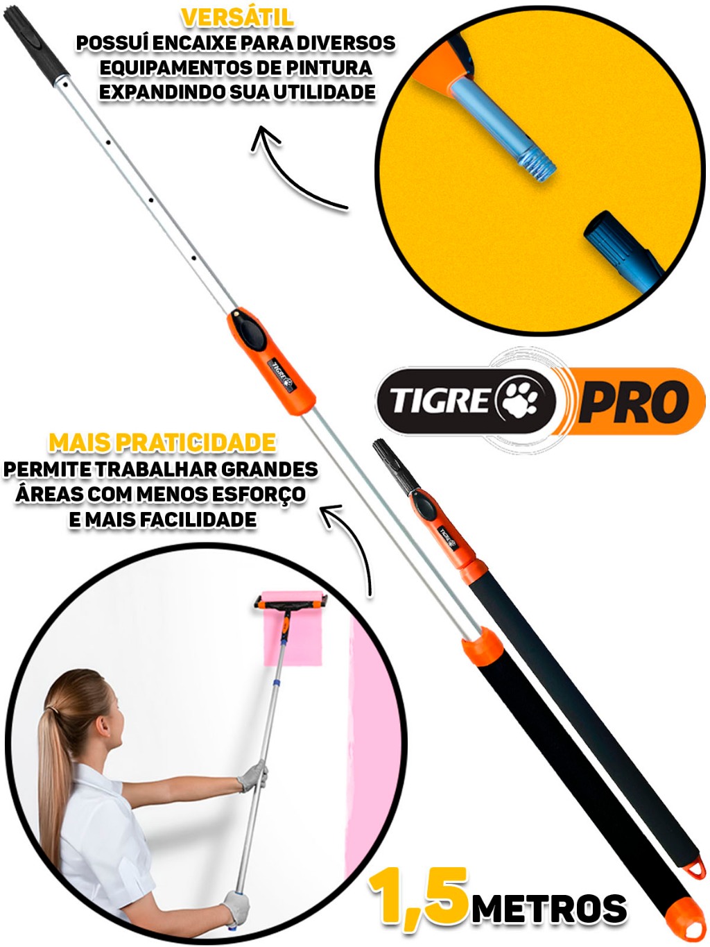Cabo Extensor Alumínio Prolongador Ajustável Para Limpeza Rolo De Pintura 1,5 Metros Profissional Tigre