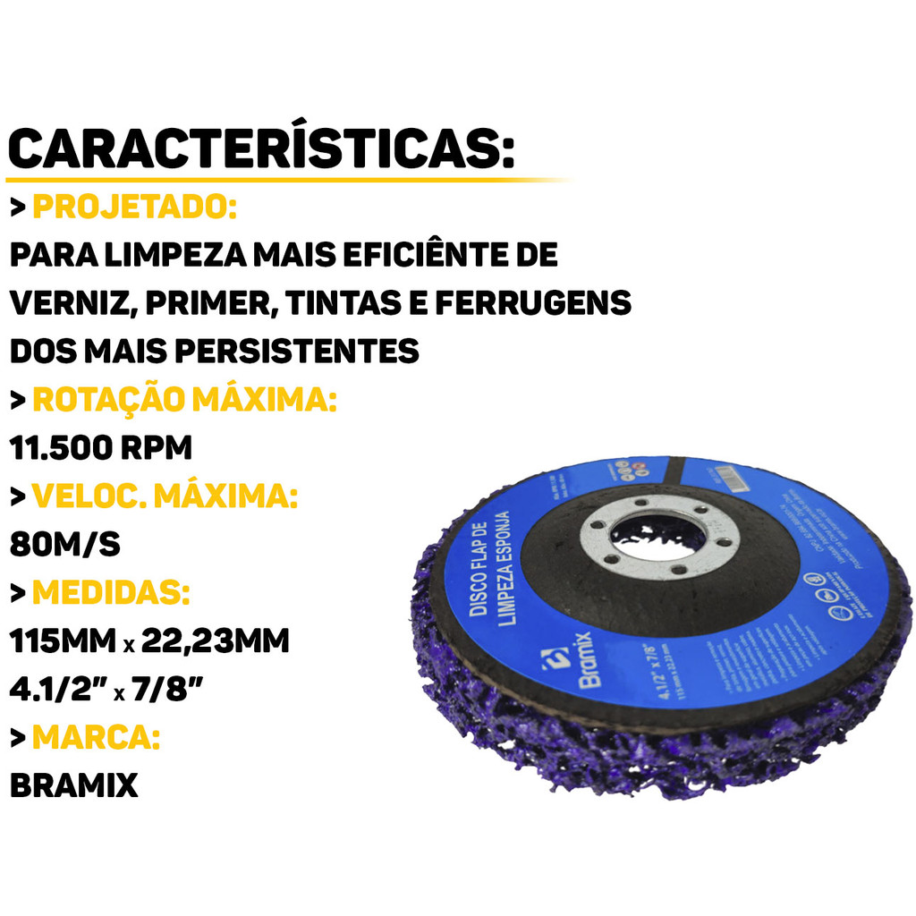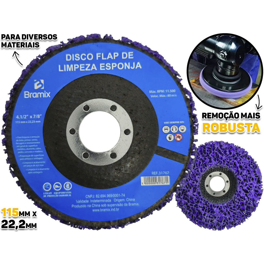 Disco Flap Desbaste Limpeza Polidor Removedor De Tinta Verniz Fundo Ferrugem 115mm Bramix