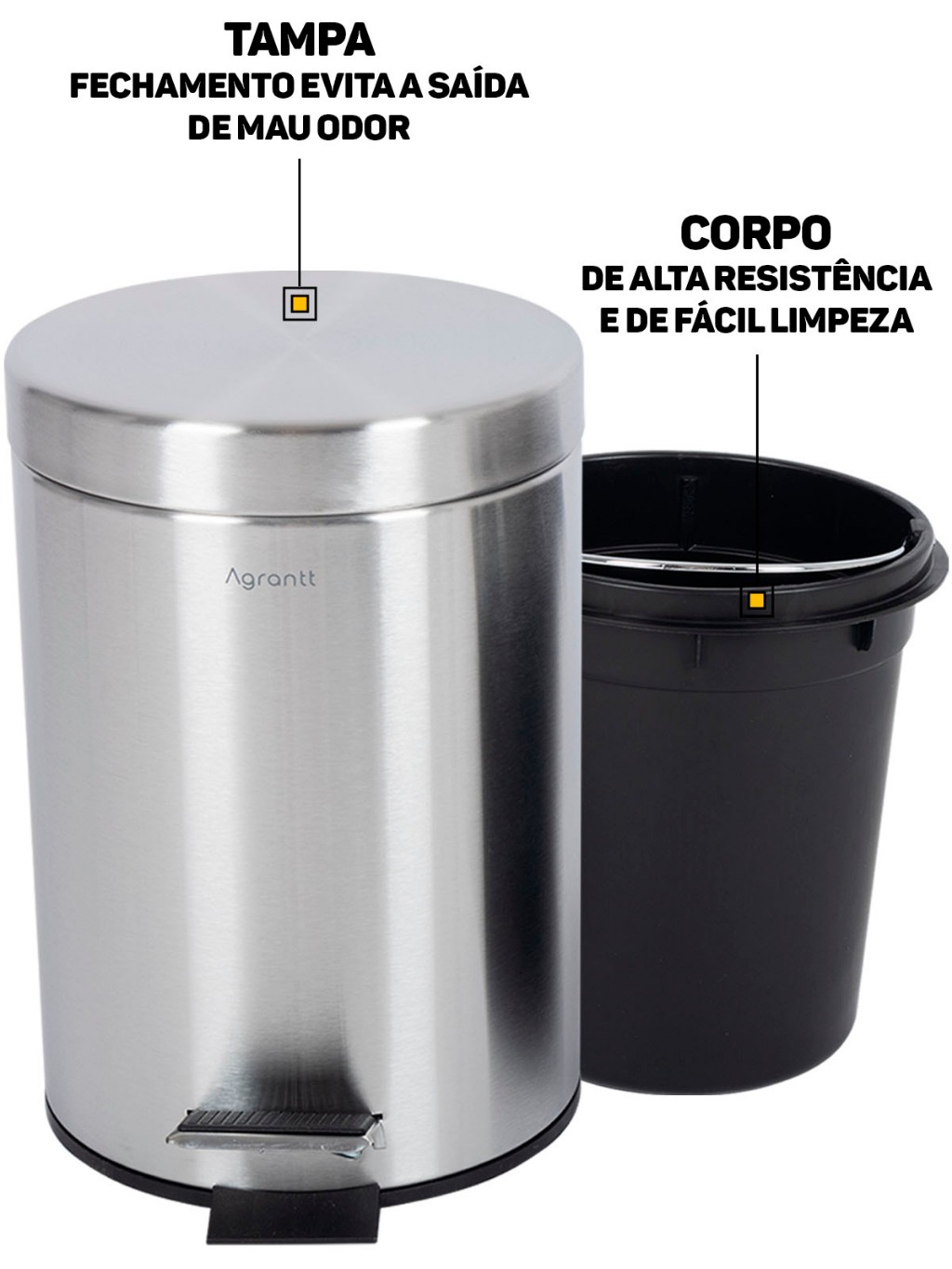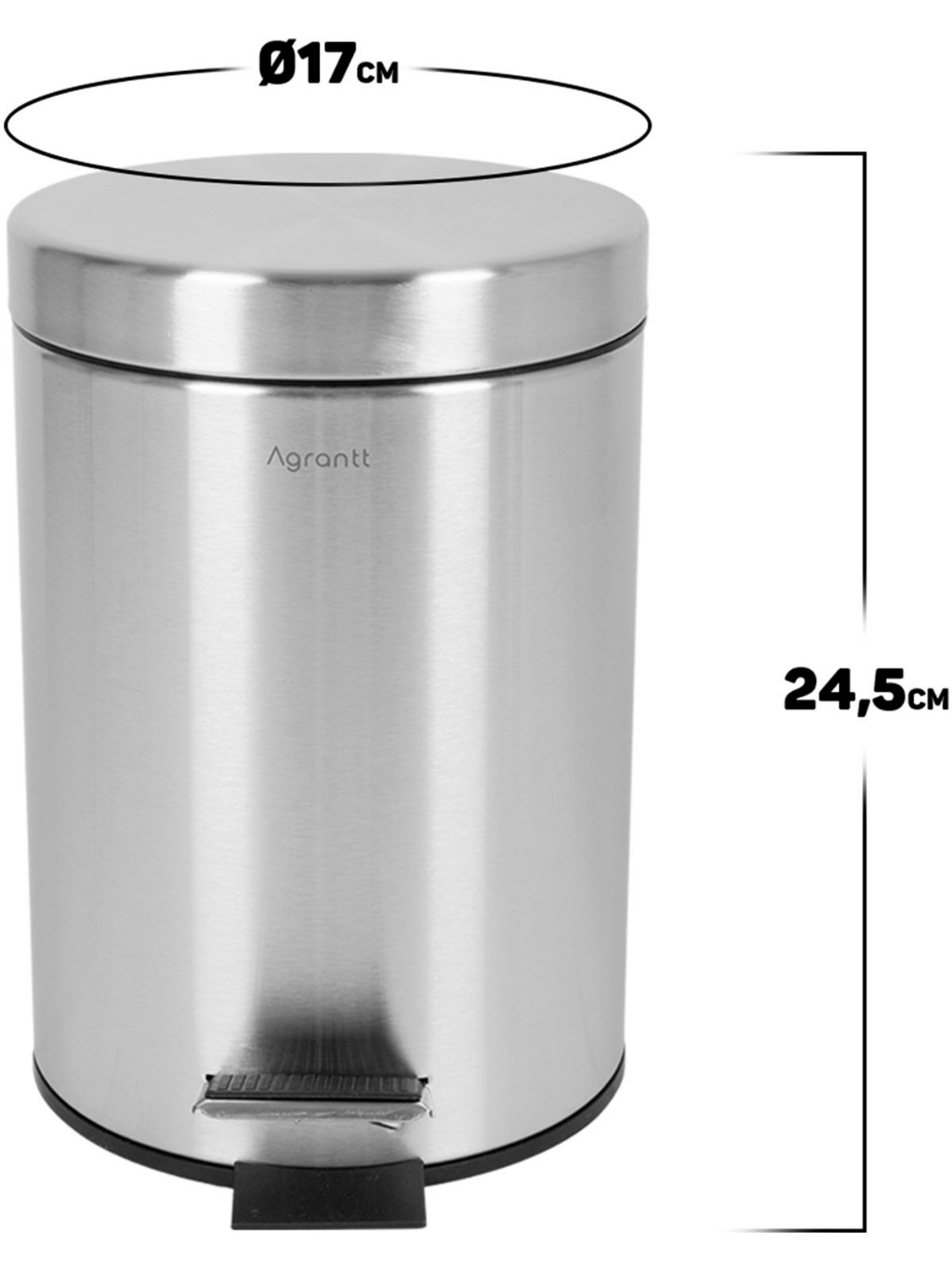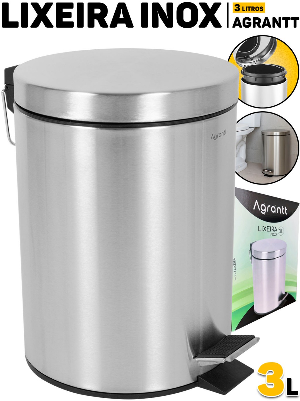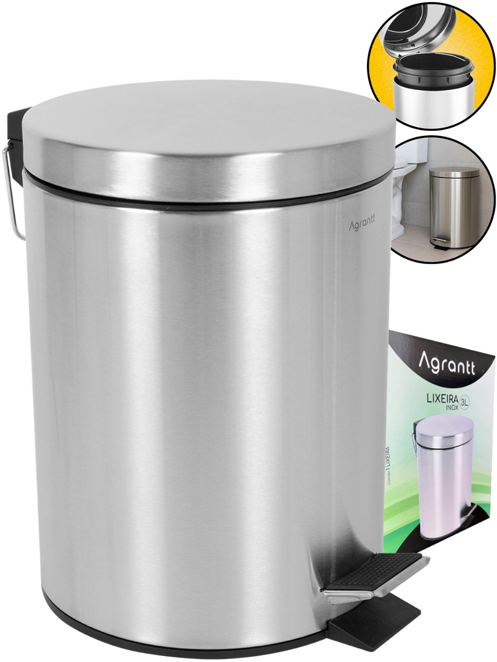 Lixo Lixeira 3 Litros Agrantt Inox Escovado Pedal Balde Removível Lavabo Banheiro Casa Escritório