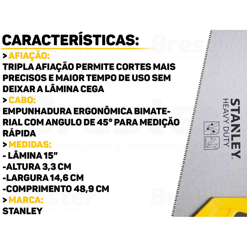 Serrote Heavy Duty Para Madeira E Laminados Tripla Afiação 15 Polegadas Cabo Bimaterial