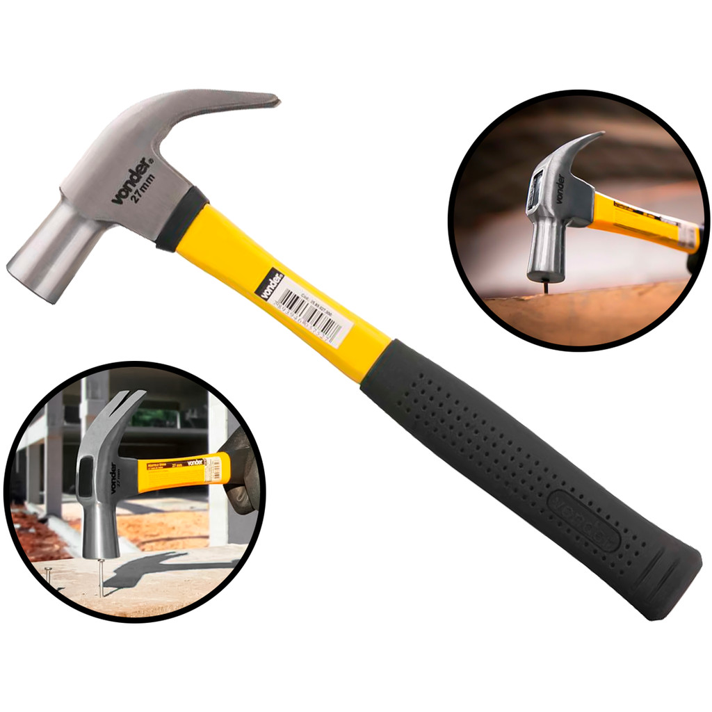 Martelo Tipo Unha Curvo Carpinteiro Marceneiro Cabo Fibra Emborrachado Profissional 27mm