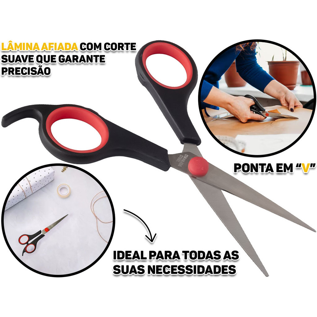 Tesoura Lâmina Metal Para Costura Artesanato Escritório Uso Doméstico Multiuso Cabo Plástico