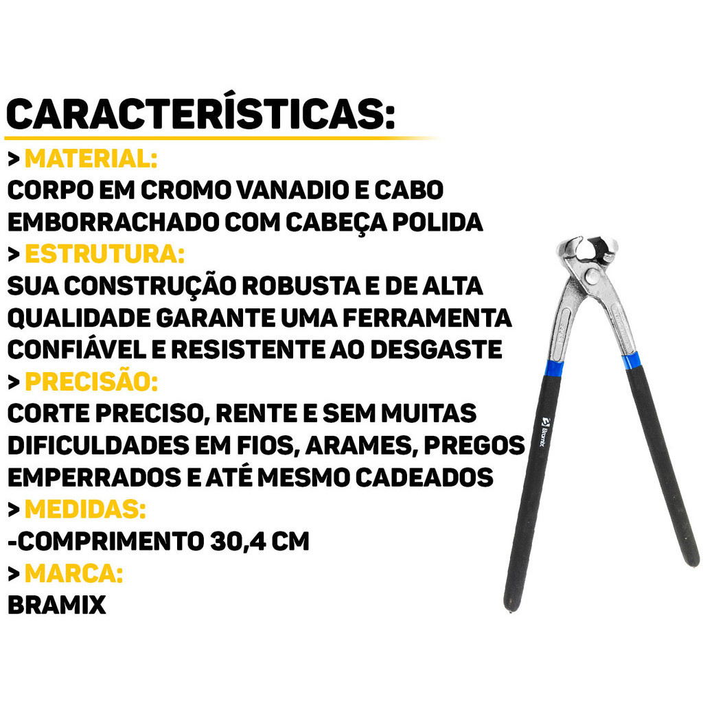 Torquês Armador Profissional Aço Cromo Vanádio Cabo Emborrachado 12 Polegadas Bramix