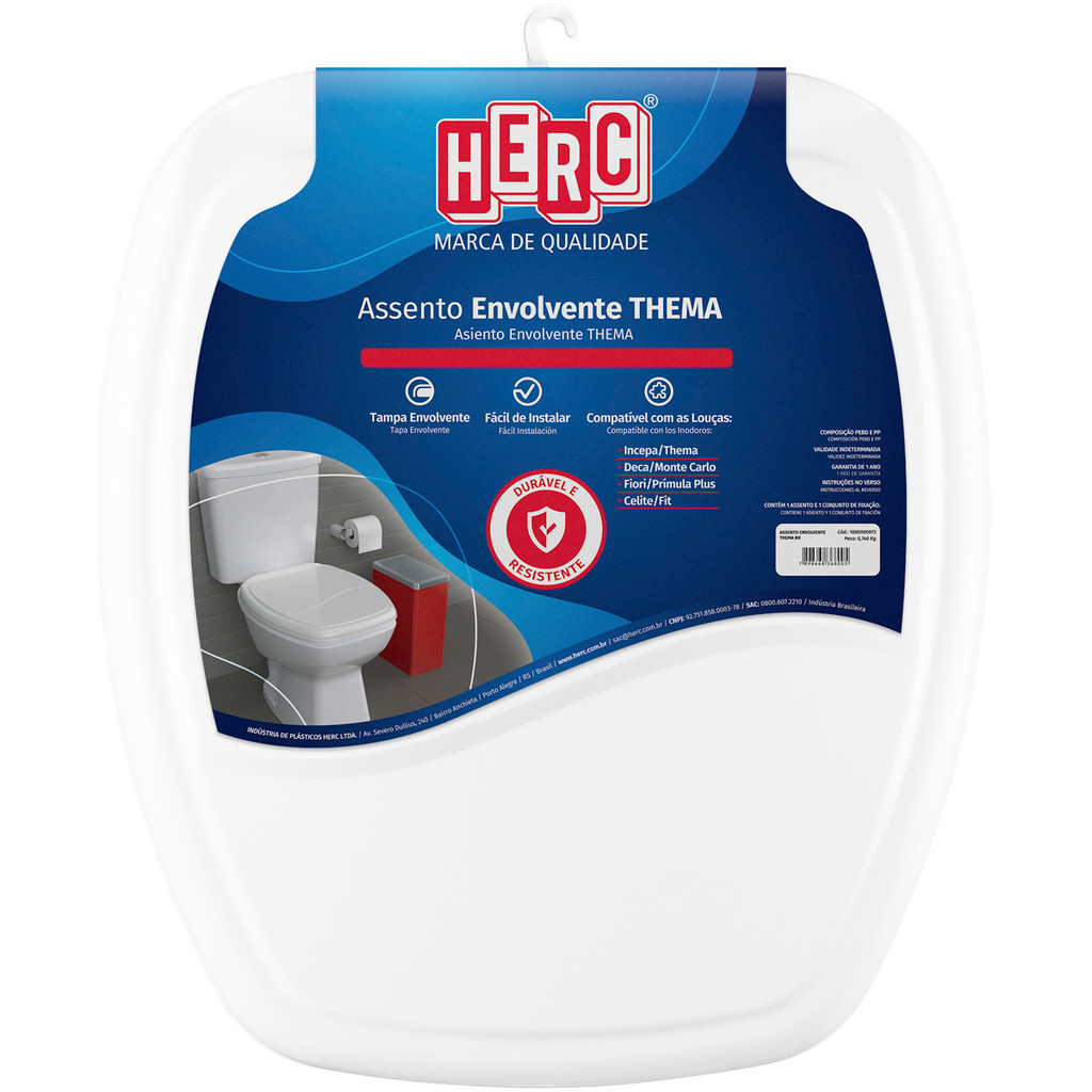 Assento Sanitário Thema Retangular Original Vaso Tampa De Privada Envolvente Herc