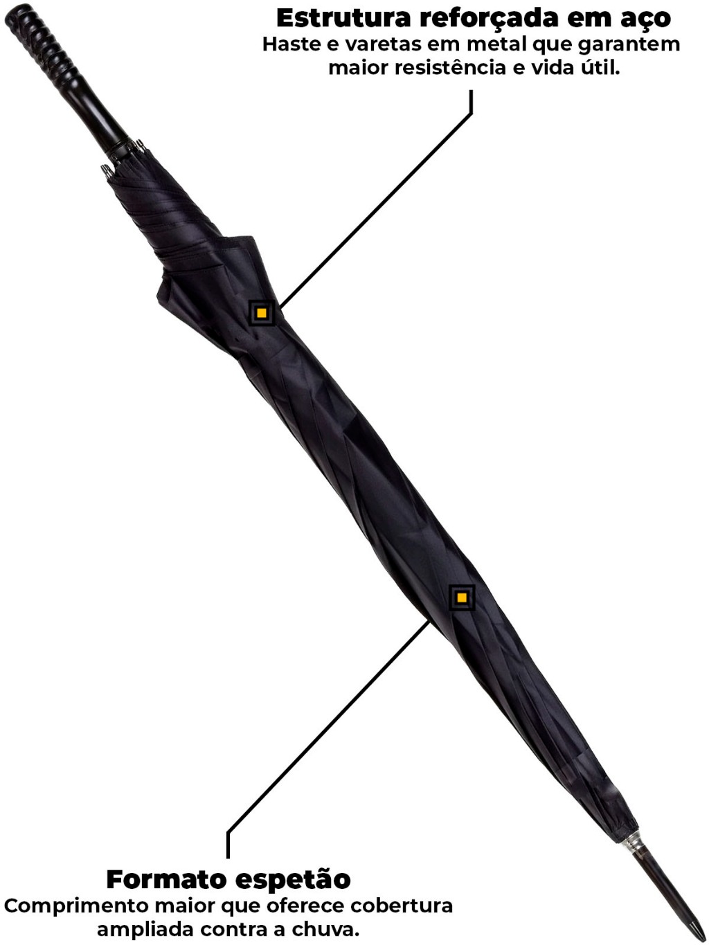 Guarda Chuva Preto Espetão Cabo Reto Vareta Dupla Elite Imports Anti Vento