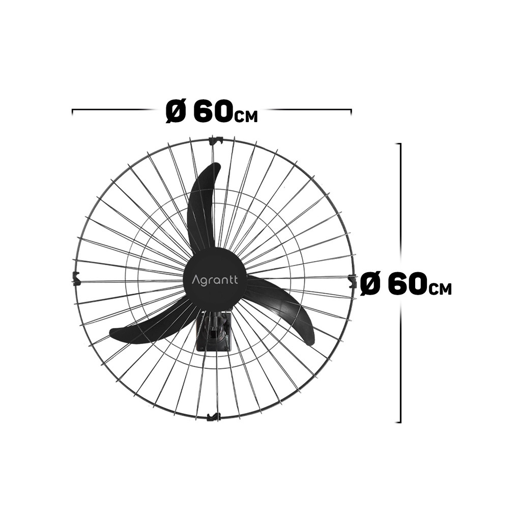Ventilador De Parede 60cm 200w Turbo Oscilante Escola Academia Comércio Igreja 110v/220v Agrantt