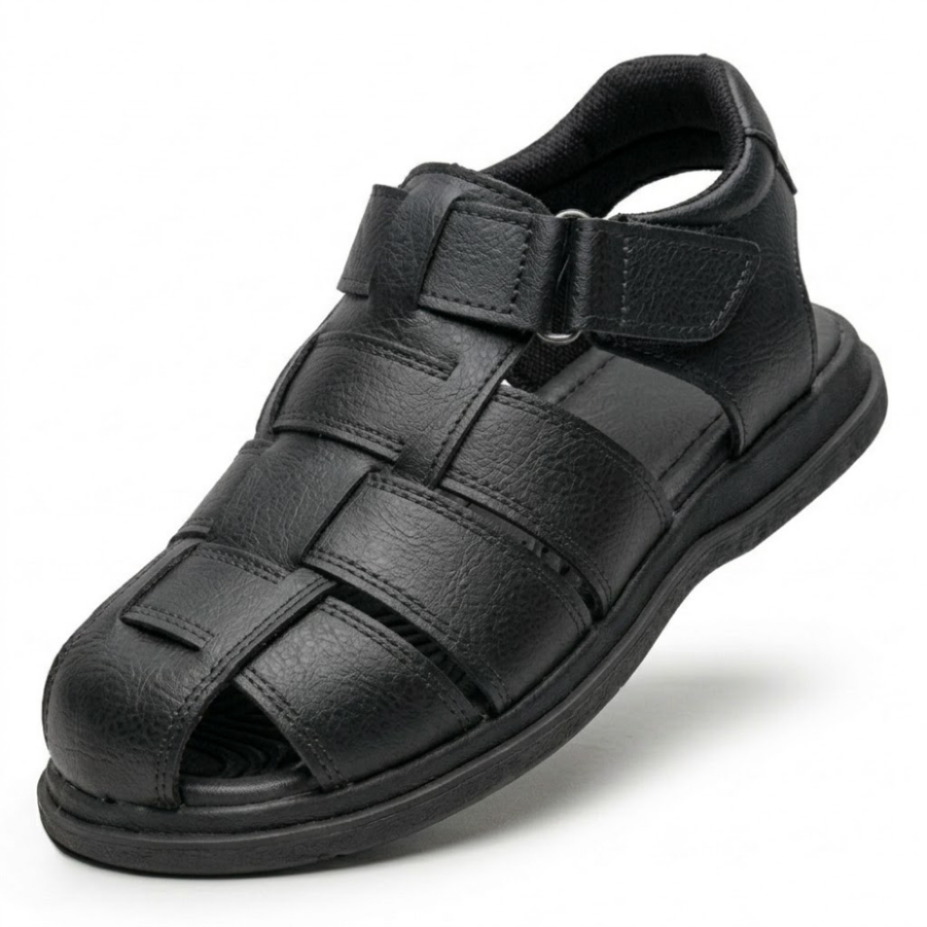 Sandália Adulto Masculina Couro Fivela Com Palmilha Ortopédica Leve e Macia Confortável Kaiak