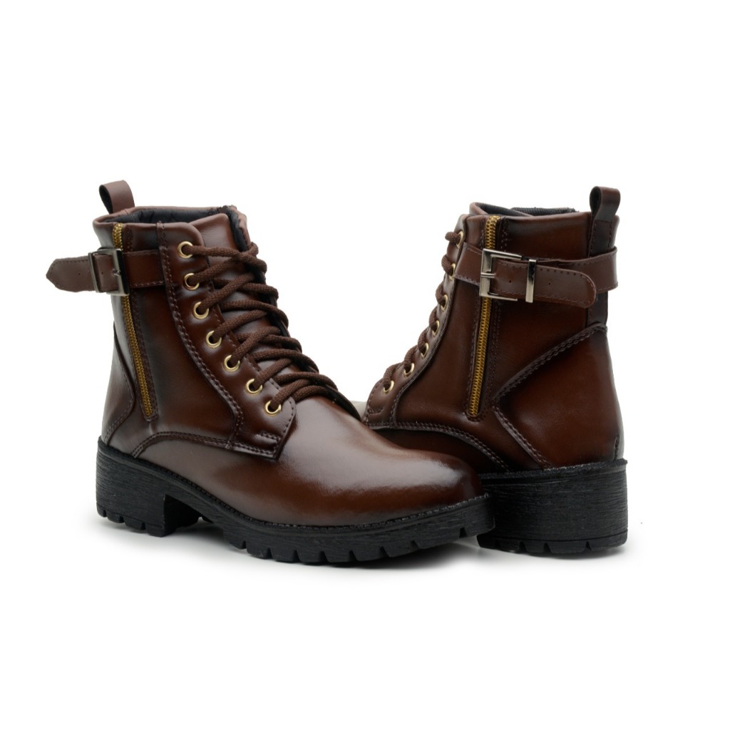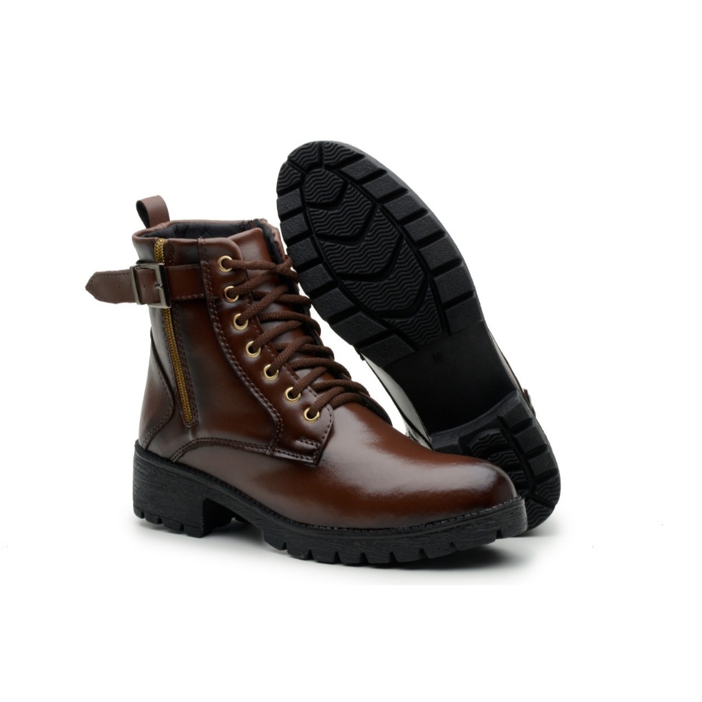 Bota Coturno Feminina Cano Baixo com Zíper Lateral Salto Bloco Tratorado e Bico Arredondado Promoção