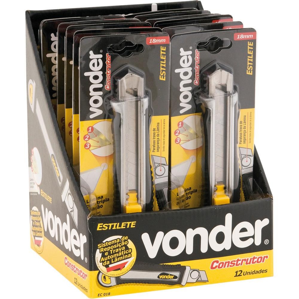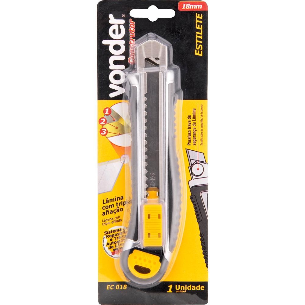 Estilete Largo 18mm Corpo Metálico com Guia Botão Trava Vonder Construtor