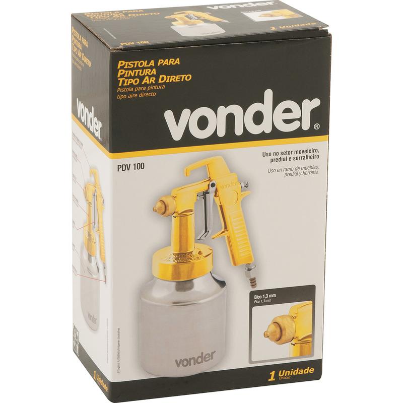 Pistola para Pintura Ar Direto 1,3mm 5,6 Pcm Caneca Alumínio Vonder