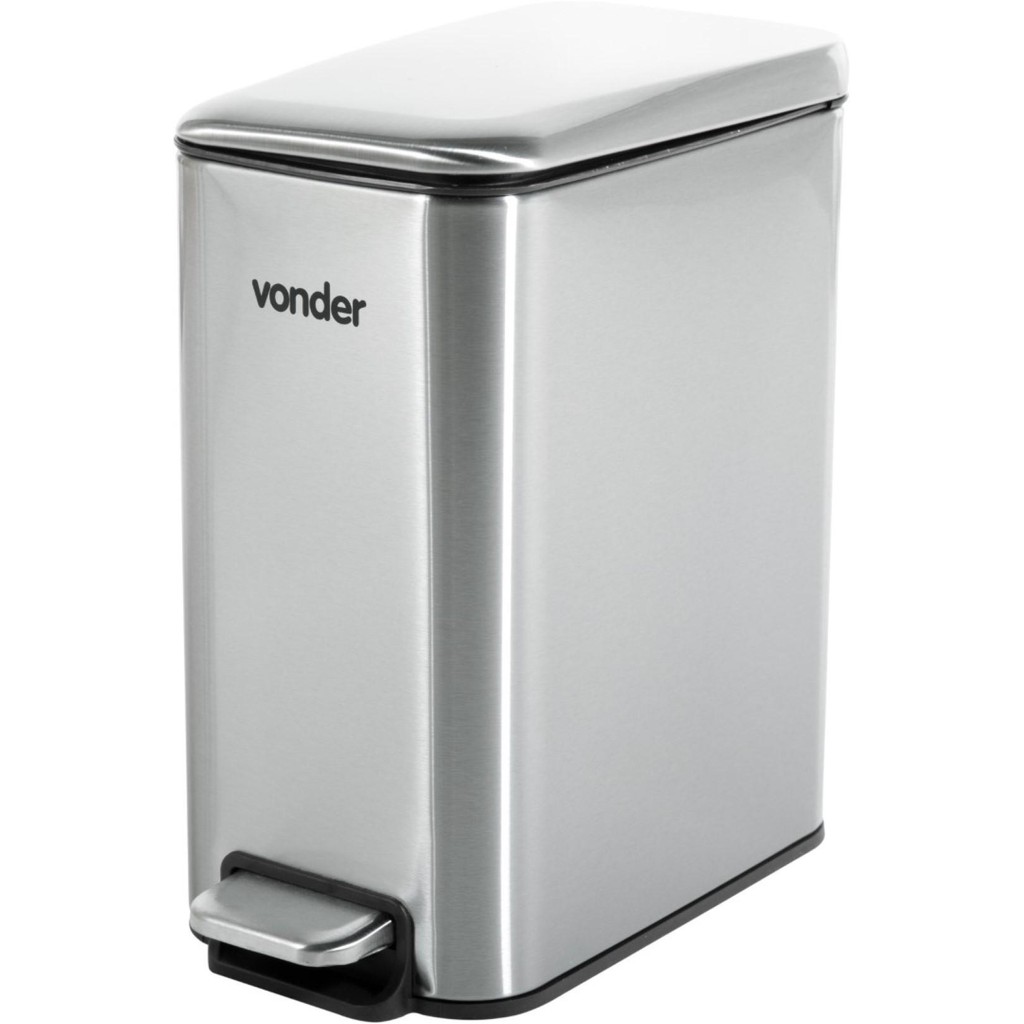 Lixeira Retangular 5 Litros Inox Cinza Vonder