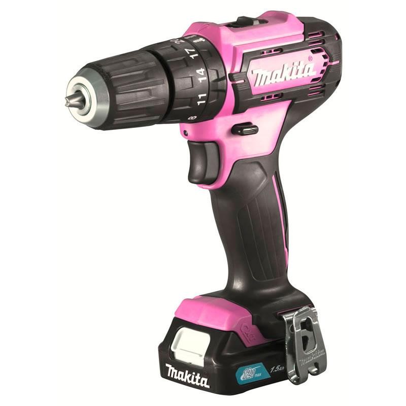 Parafusadeira Furadeira Impacto 12V Rosa 10Mm Sem Fio 2 Baterias Carregador Maleta HP333DWYEP Makita