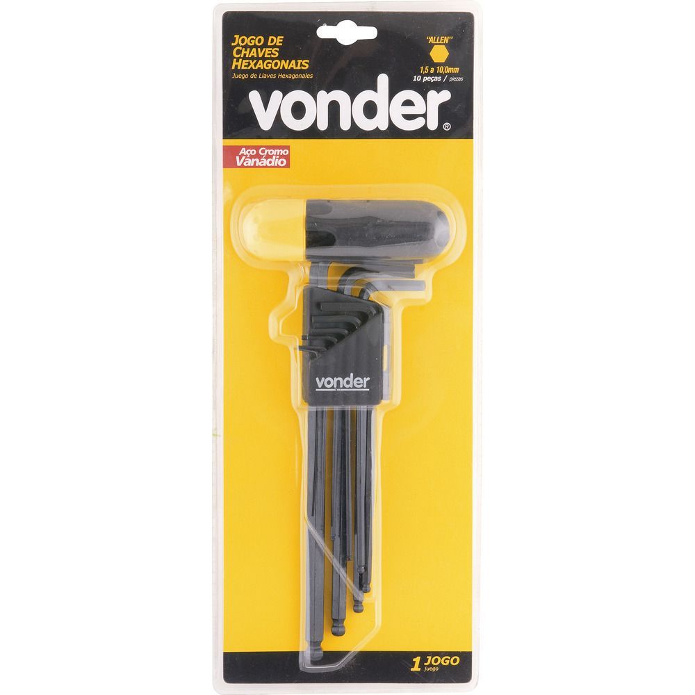 Jogo Chave Hexagonal Allen 1,5-10,0mm Tipo L Abaulada Longa Vonder
