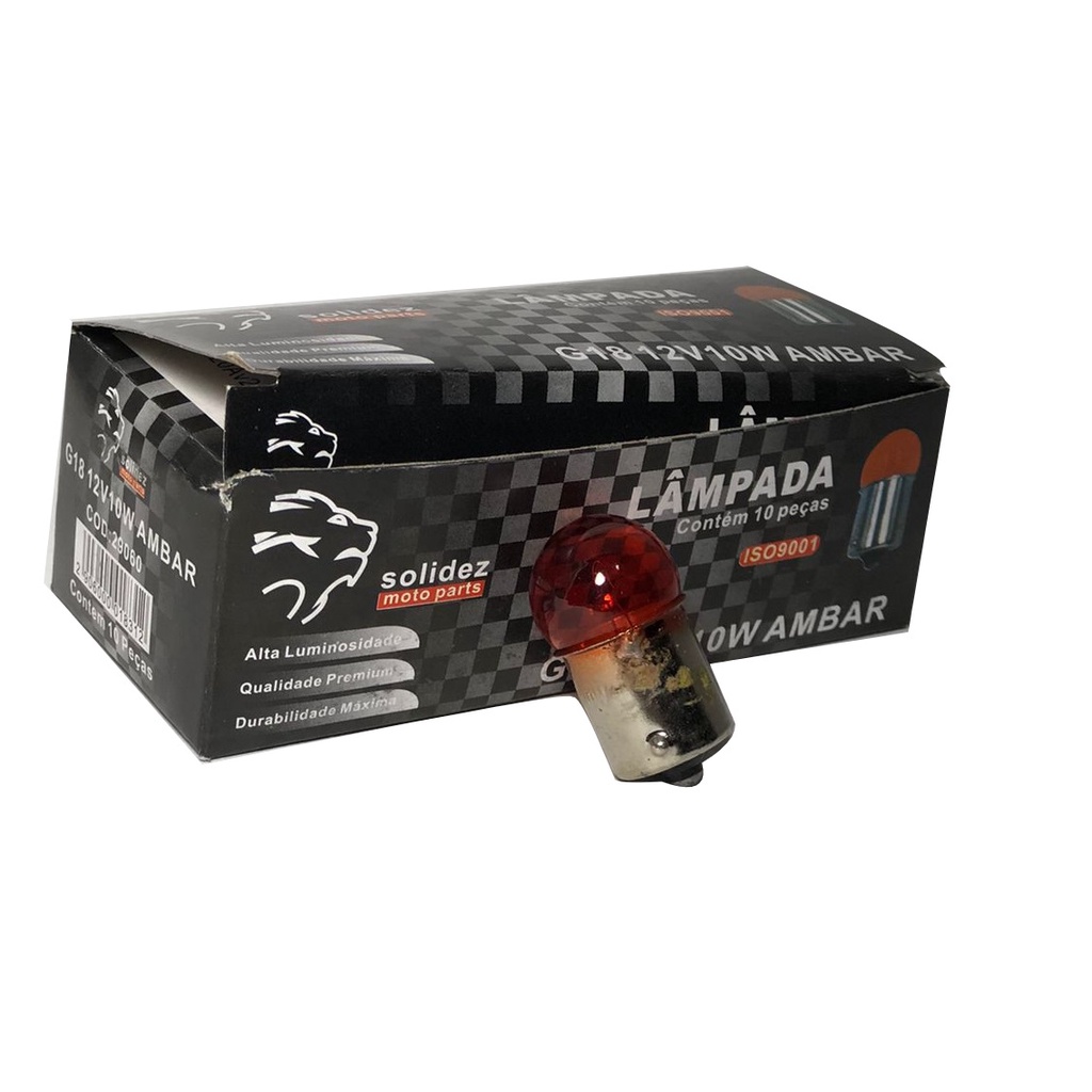 Lampada Pisca G18 12v 10w Cor Amarela Ambar Uso Universal ( 10 Unidades ) SOLIDEZ