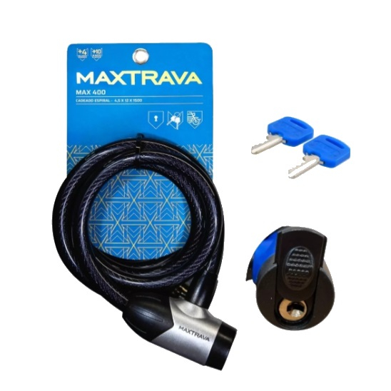CORRENTE CADEADO TRAVA BICICLETA CHAVE AÇO BIKE MOTO ( 4,5 x 12 x 1500MM ) - MAX TRAVA