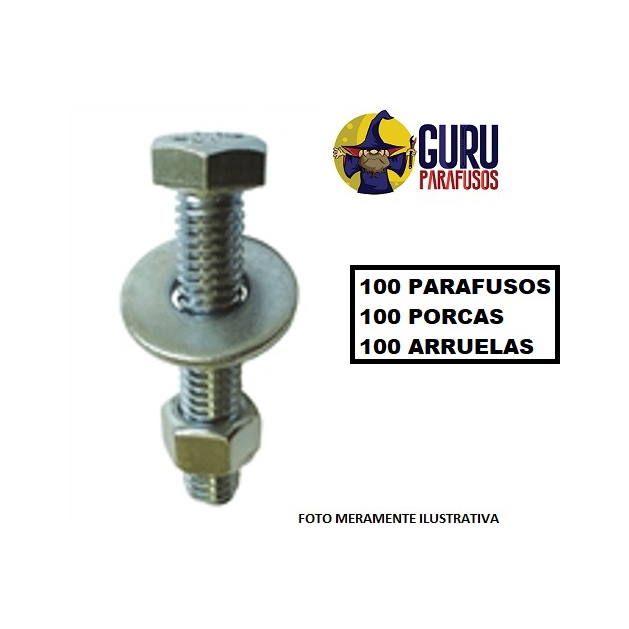 100 Parafuso Sextavado 3/16 - 300 Peças - Com Porca e Arruela