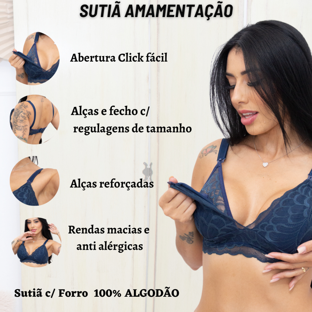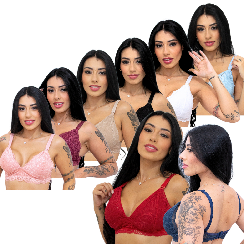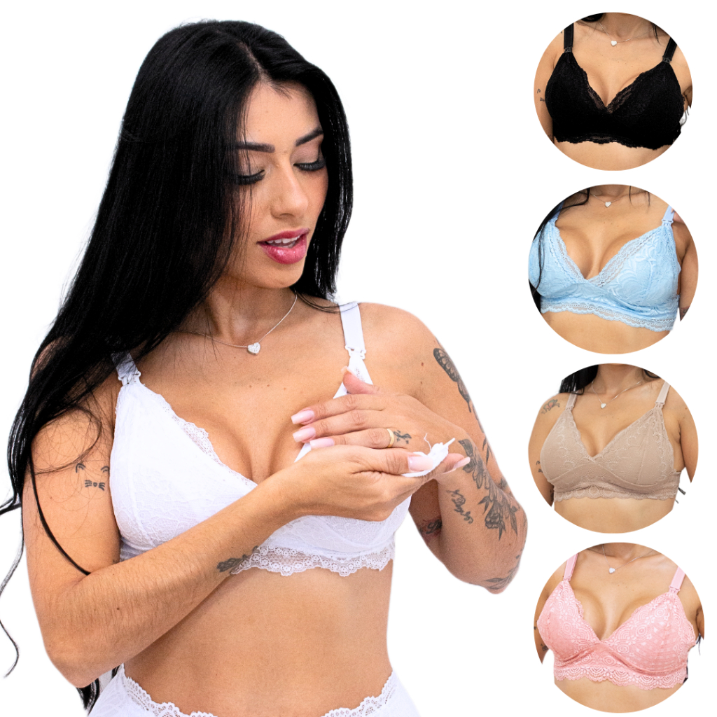 Kit 5 Sutiã Reforçado Amamentação Rendado Gestante Soutien Sem Bojo para Amamentar Plus Size