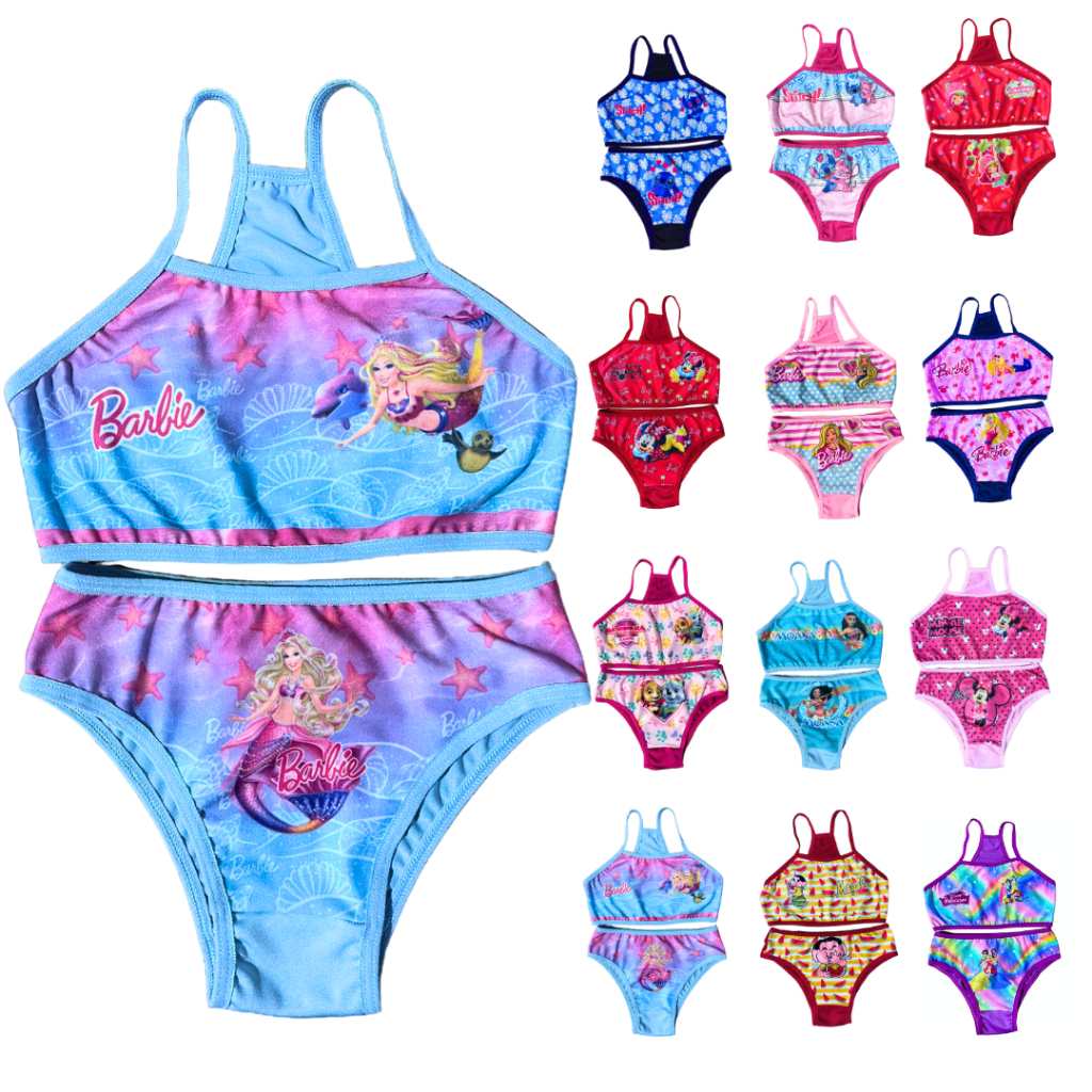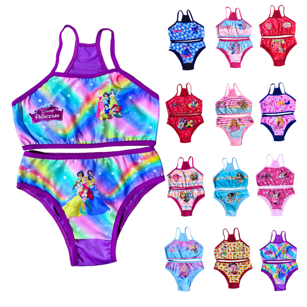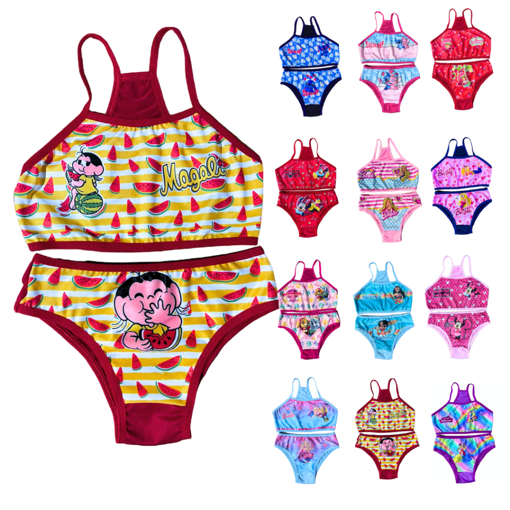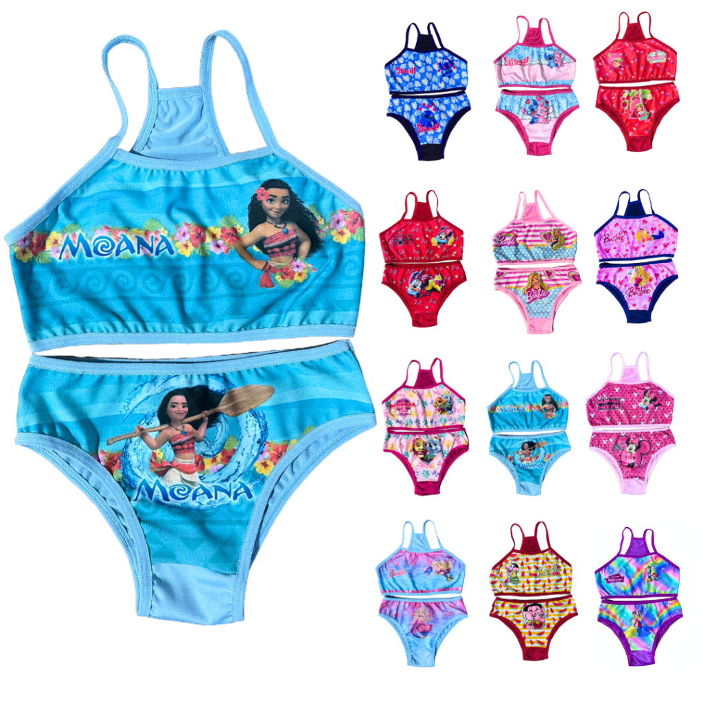 Kit 2 Conjunto Biquíni Infantil Moda Praia Sublimado Calcinha e Top Presente verão menina desenhos