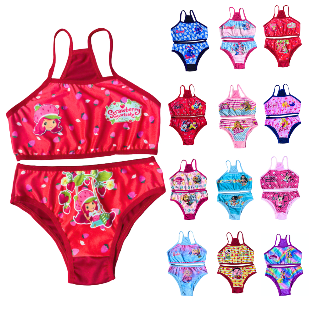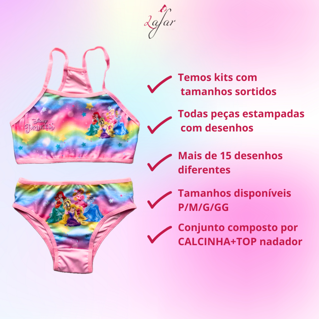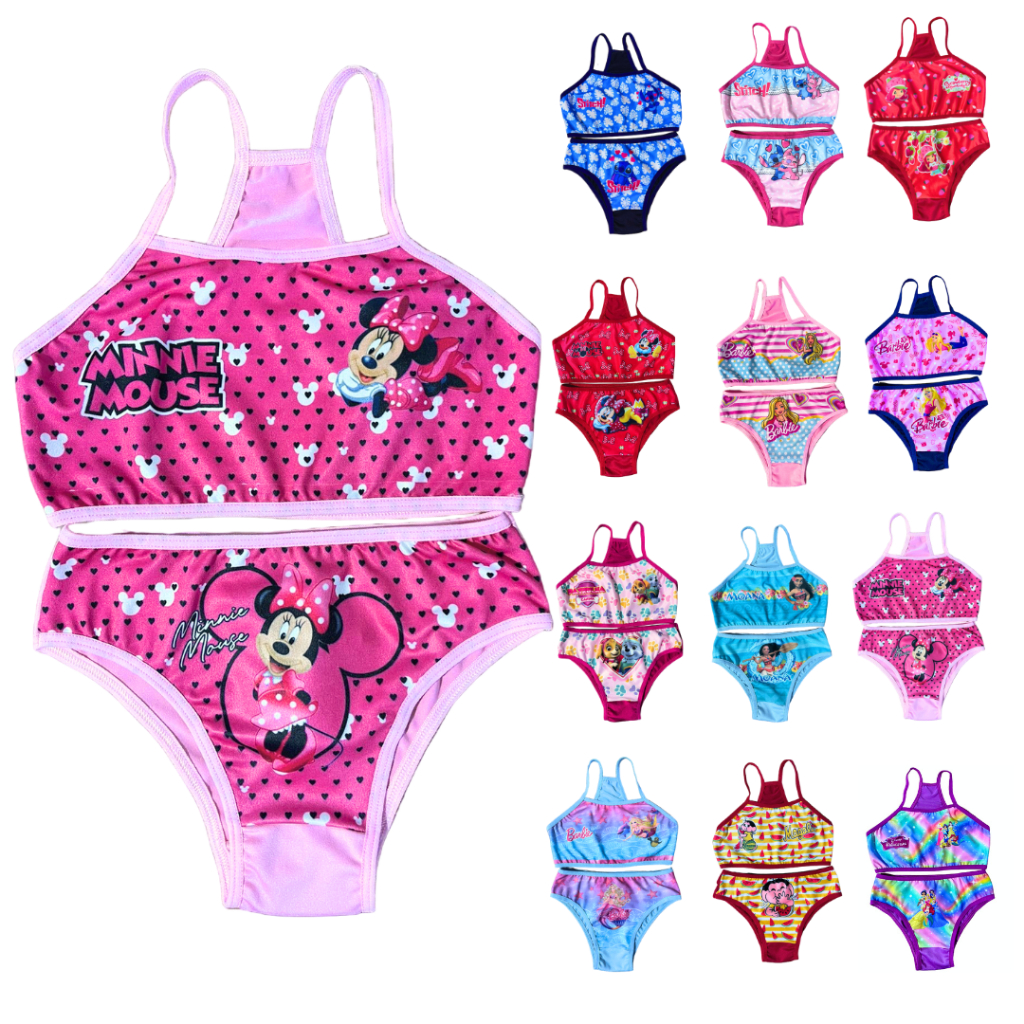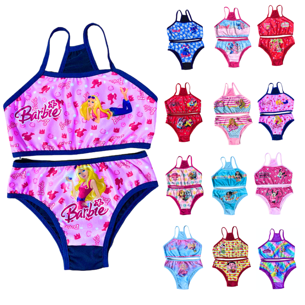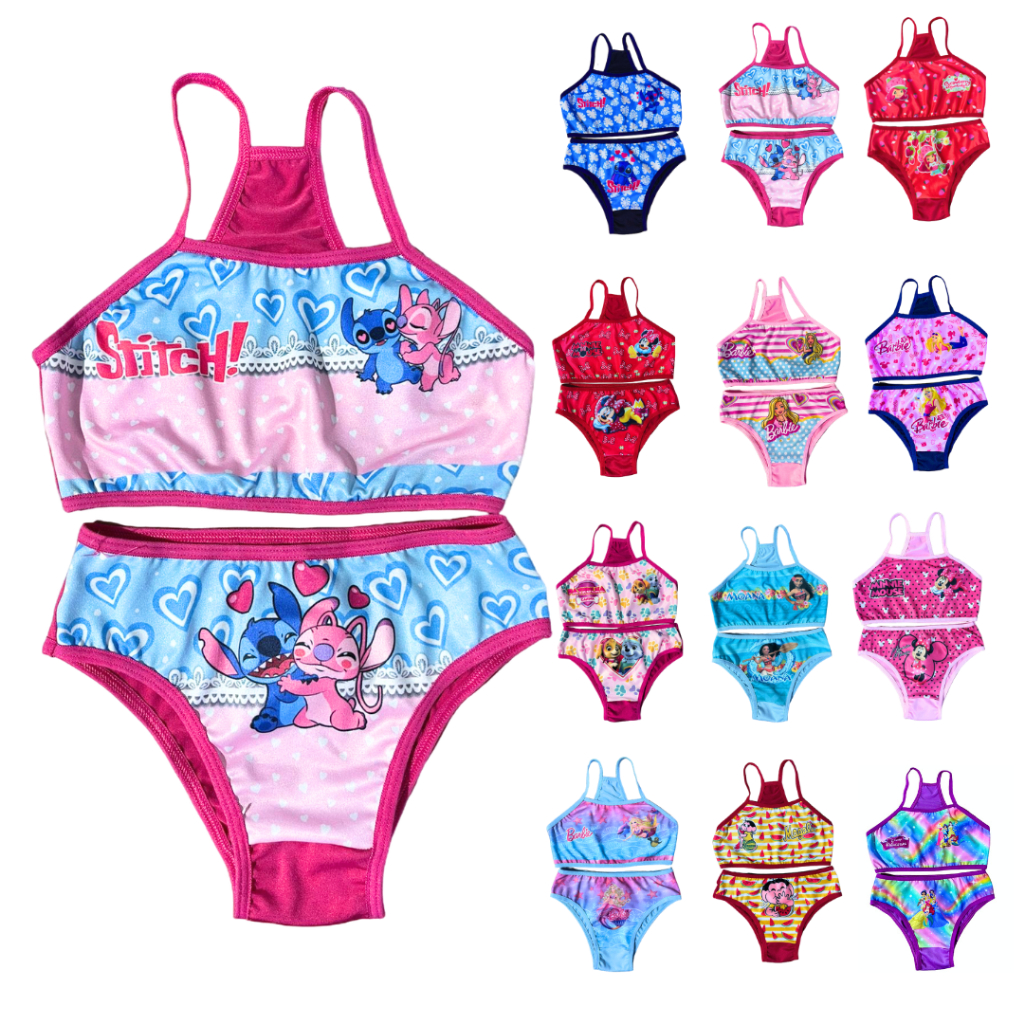 Kit 2 Conjunto Biquíni Infantil Moda Praia Sublimado Calcinha e Top Presente verão menina desenhos
