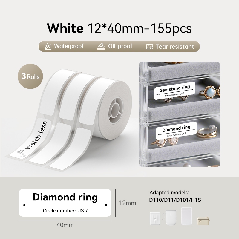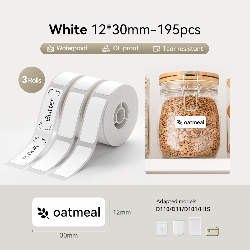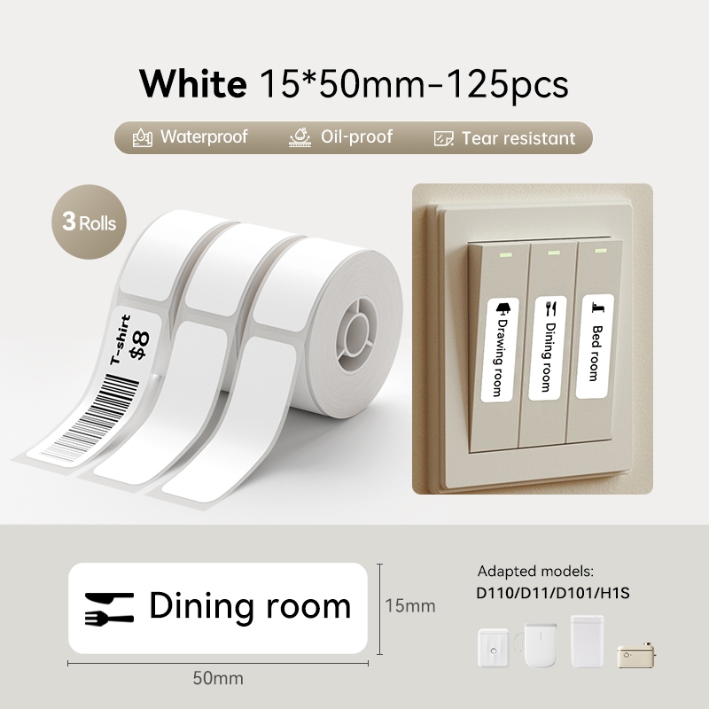 【 3 Rolos 】 Niimbot D11/D110/D101 Papel De Rótulo Branco Adesivo À Prova D'água
