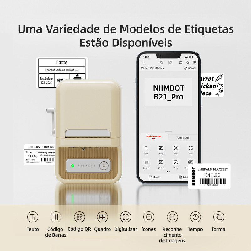 Niimbot B21_Pro Impressora De Etiquetas Fotográficas Smart Bluetooth Label Maker Imagem Home Comercial Máquina De Escrit